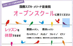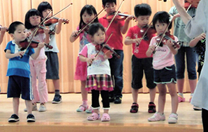 今回は、0〜3歳児コースの長野教室に参加され、ヴァイオリン科の小出倫代先生クラスに進まれた、高池利菜さん、綾菜さん(現在6歳、写真中央)、由依菜さん(3歳)の事例をご紹介します。二人の子どもたちの育ち方の違いを感じつつ、子育てに必要な「待つこと」の大切さを実感されています。