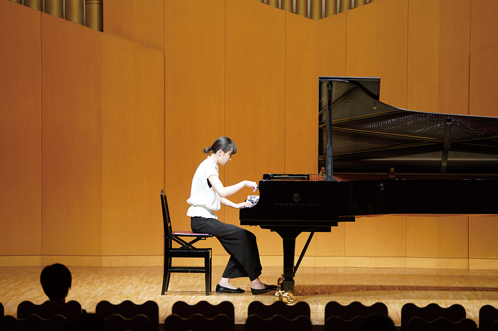 長年出演されている方々への記念品贈呈。左のお二人は20年連続、右は10回目と、息の長い参加にたくさんの拍手が寄せられました 関東地区ピアノ科有志の先生方が開催する、研究科全課程卒業生コンサート。9月16日(月・祝) すみだトリフォニーホール小ホールで開催された第20回記念の今年は、例年以上の参加があり、盛りだくさんなプログラムが用意されました。ソロ演奏、デュオ演奏、「トルコ行進曲」のリレー演奏に「キラキラ星」の大合奏。20年間出演されたお二人と、10回目の出演となったお一人への記念品贈呈の場面もありました。
