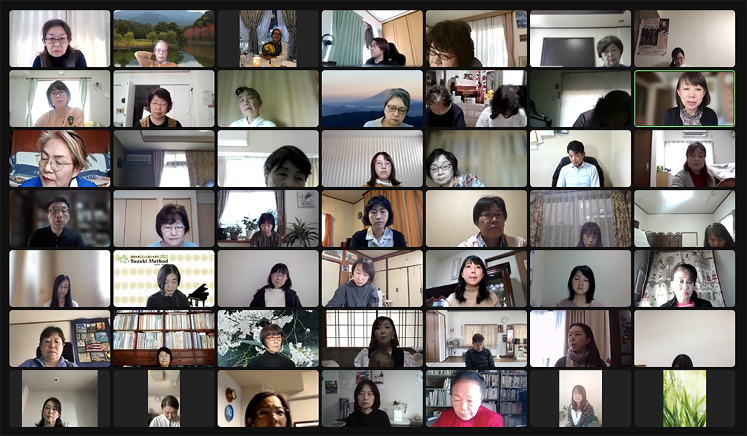 最初のブレイクアウトルームでは、「なぜ指導者になったのか、なぜ0〜3歳児コースの指導者になったのか」がテーマになり、次のブレイクアウトルームでは、「スズキで学ぶメリットは何か、他の音楽教室との違いは何か」がテーマになりました。