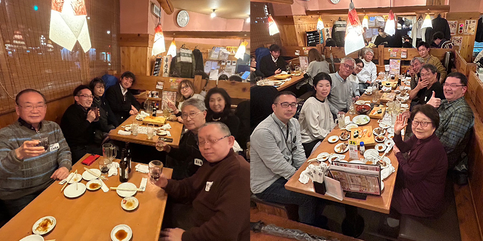 最後に大急ぎで記念撮影大会をして、先生方に感謝を申し上げ、それぞれの別れを惜しみながら、全員で撤収です。その早いこと! 5〜6分程度で片付いてしまいました。写真に写っている方で総勢45名。写っていない方が3名。オンラインで3名。これまでで一番多くの皆様の参加をいただいたことになります。そしてこのうち、18名が大府駅前の懇親会会場に移動し、大いに懐かしい話に花が咲きました。いくつか寄せていただきました感想を以下、お知らせしましょう。
