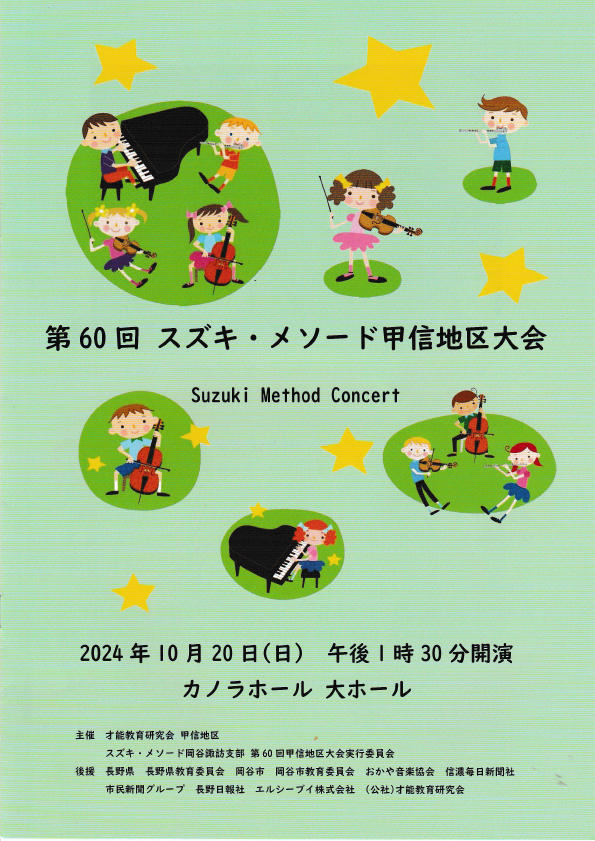 前日とは打って変わって秋と言うには風が冷たく、少々戸惑う寒さではありましたが、青空も広がり、第60回スズキ・メソード甲信地区大会を祝福するには絶好の日になりました。
