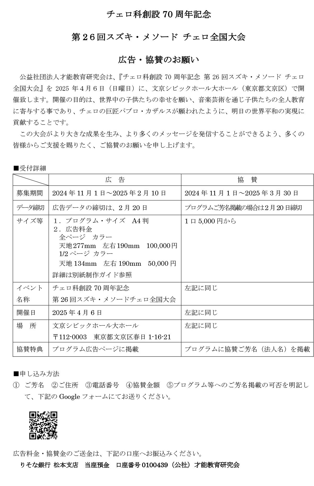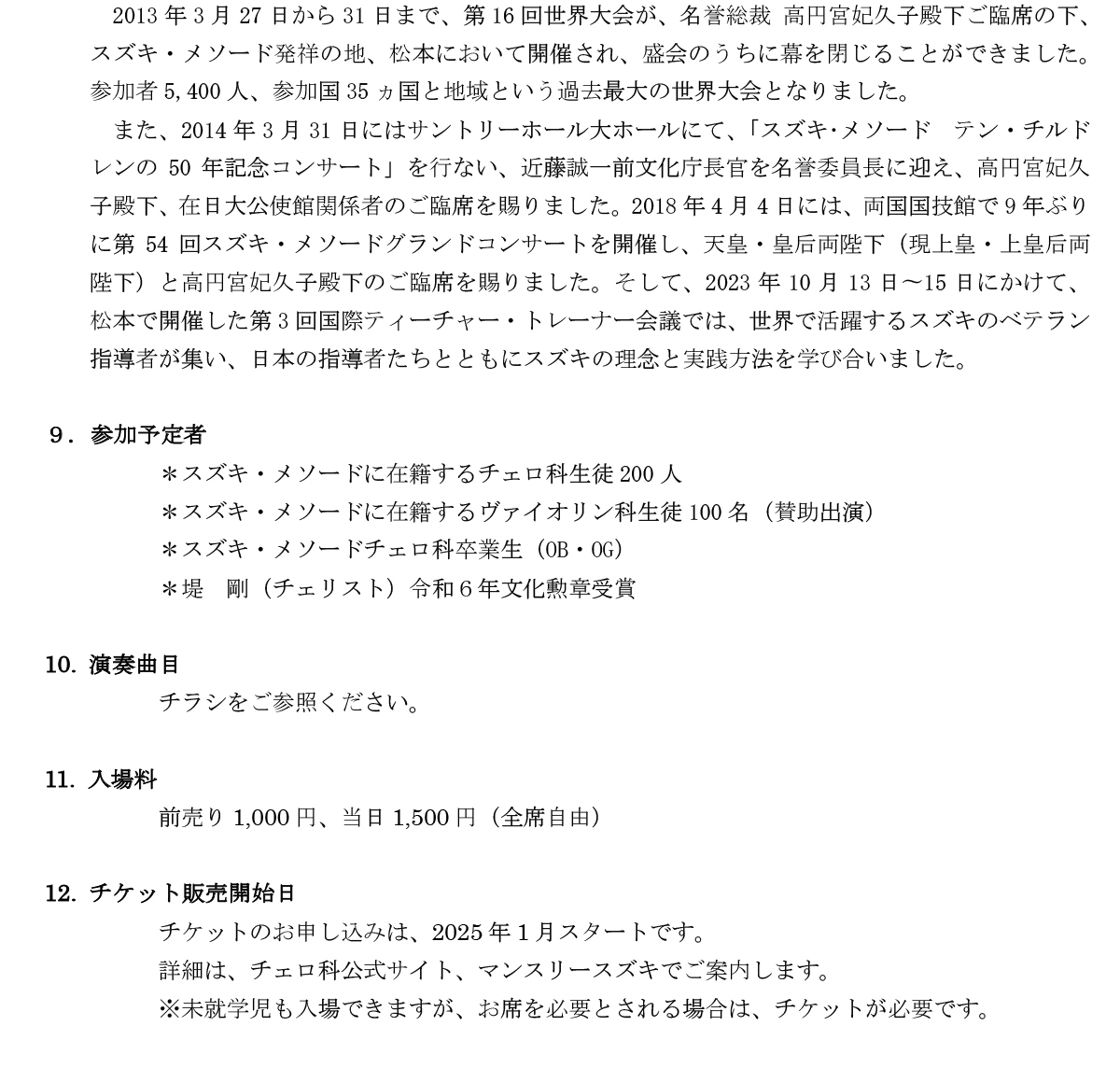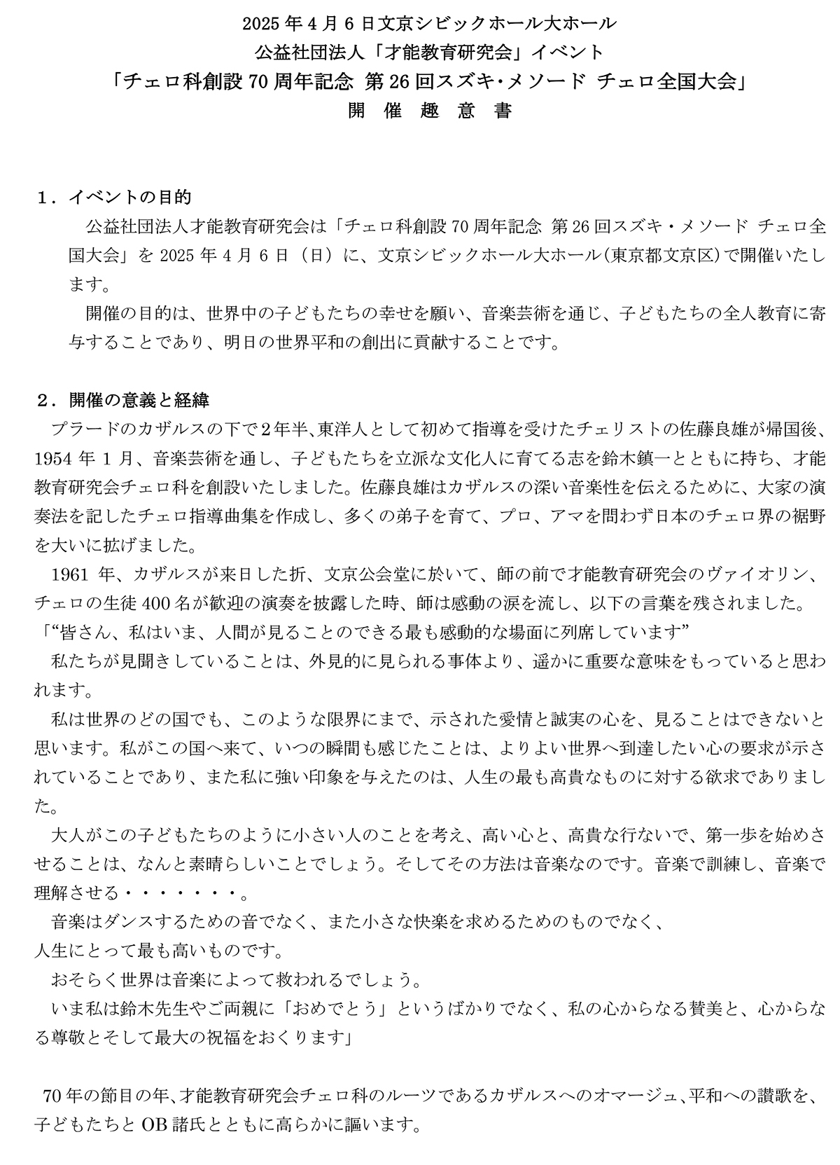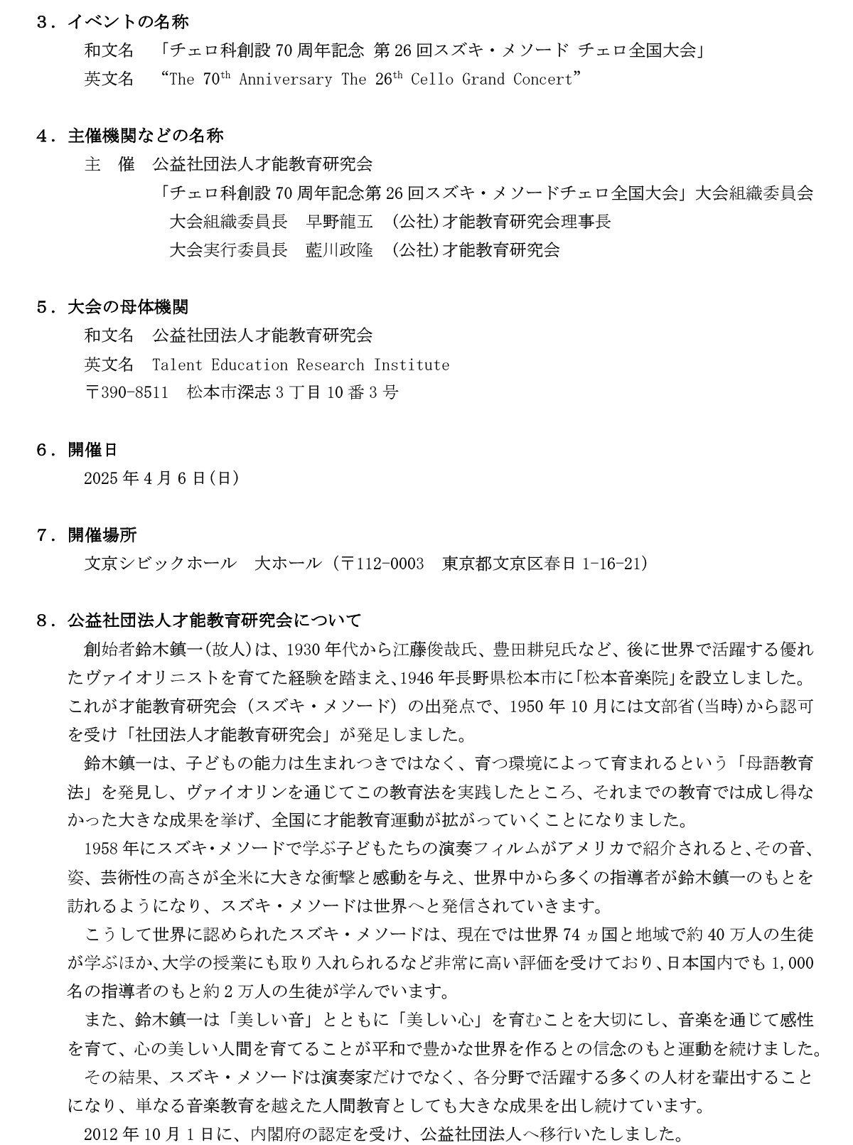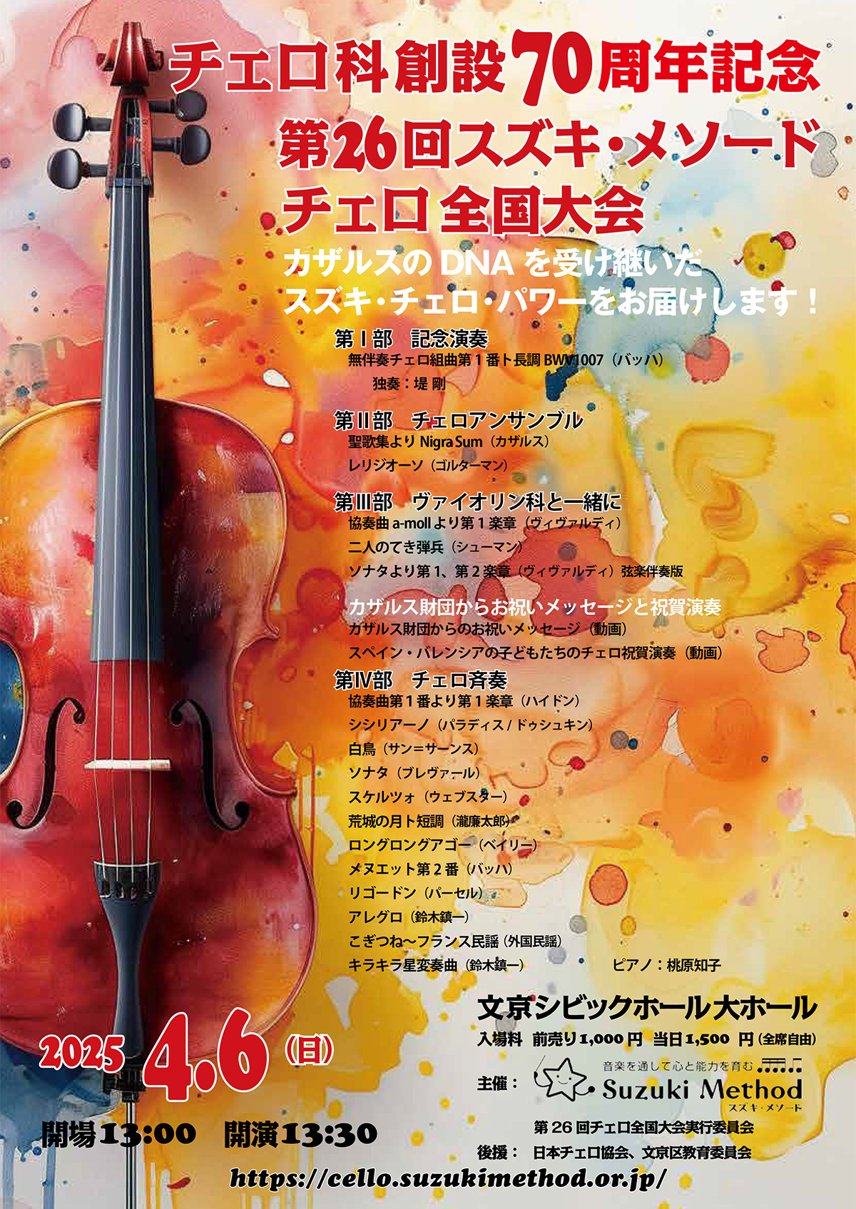 チェロ科創設70周年記念 第26回スズキ・メソード チェロ全国大会の
