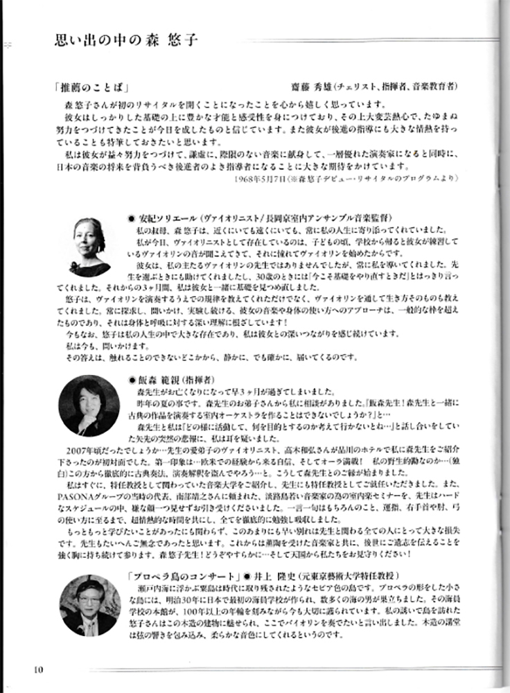 本会出身のヴァイオリニスト、森 悠子さん追悼コンサート