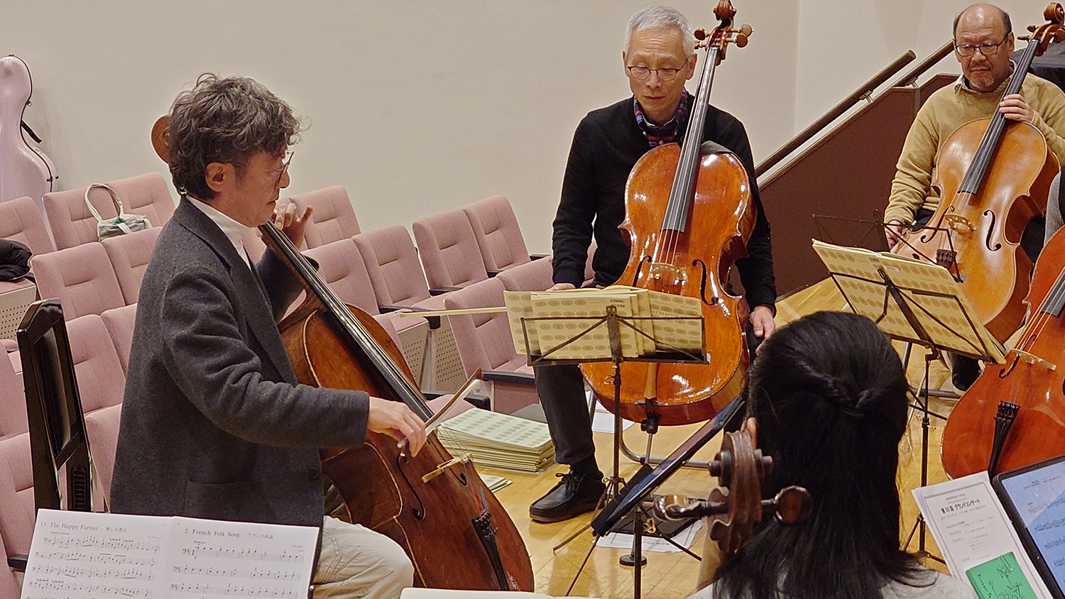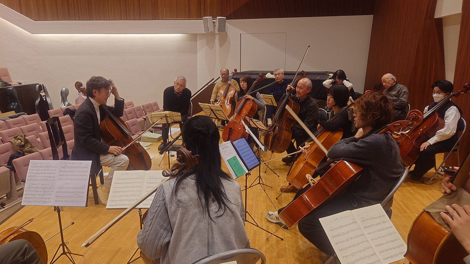 その他には、佐藤満先生を主体に2026年3月のグランドコンサートで演奏する楽曲の奏法統一や、チェロ科で進めている指導曲集の指導ポイントの取り纏めの続きを行なったり、初日の夜には山本先生を囲んでの懇親会も開かれ、大変充実した2日間となりました。