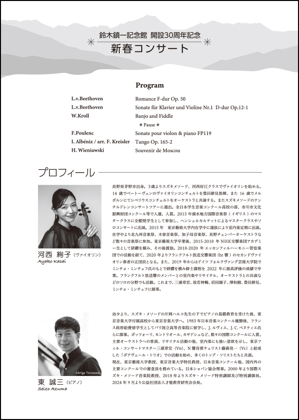 鈴木鎮一記念館 開設30周年記念 新春コンサート