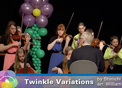 それでは、エイミー・ゲスマー・パックマンをディレクターとする、ボウルダー・スズキ・ストリングスが、私の指揮で「スズキメロディーによる77のバリエーション」から、バリエーション46を皆様のために演奏いたします。