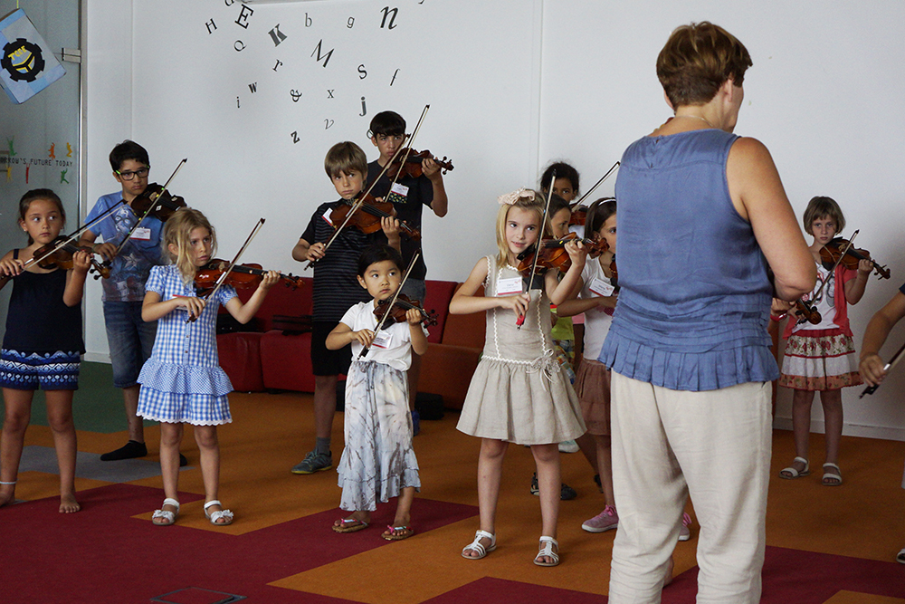また、夏期学校では、朝の9時から夕方7時までのハードスケジュールにも関わらず、それぞれの講師の先生方が様々な工夫をこらしてレッスンをしてくださったので、子どもたちはキラキラした目で楽しそうにレッスンを受けていました。日を重ねるごとに、子どもたちの音が、より響きのある美しい音へと変わっていき、次第にみんなの心が一つになっていくように思われました。