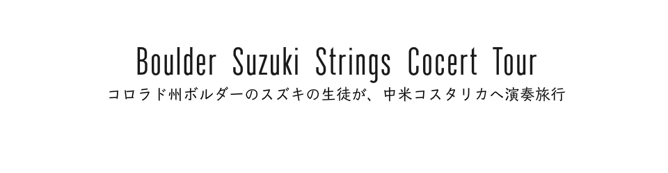 アメリカスズキ協会初代会長として、アメリカのスズキを牽引されたウィリアム・スター先生が、95歳になられた今も月に2度のグループレッスンをされるボルダースズキストリングスの代表生徒たちが、3月22日(木)〜3月31日(土)の日程で、コスタリカ演奏ツアーに行ってきました。一年おきに行なわれるこのコスタリカ演奏ツアーは今回ですでに5回目。乾季のシーズンに合わせてのプロジェクトです。参加した生徒さんの母、Ms.Motoko Reidさんからの報告です。