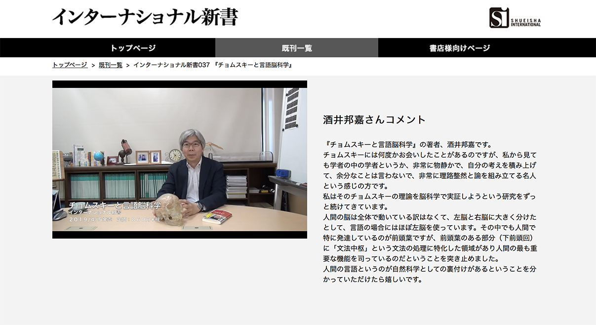 詳しくは、集英社インターナショナル新書のサイトをご覧ください。酒井先生ご自身の動画メッセージもご覧いただけます。下の画像をクリックすると移動します。