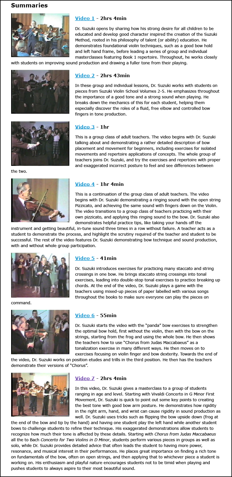 また、ISA(国際スズキ協会)が作成した各DVDの最新要約も、同協会のウェブサイトで閲覧可能です。