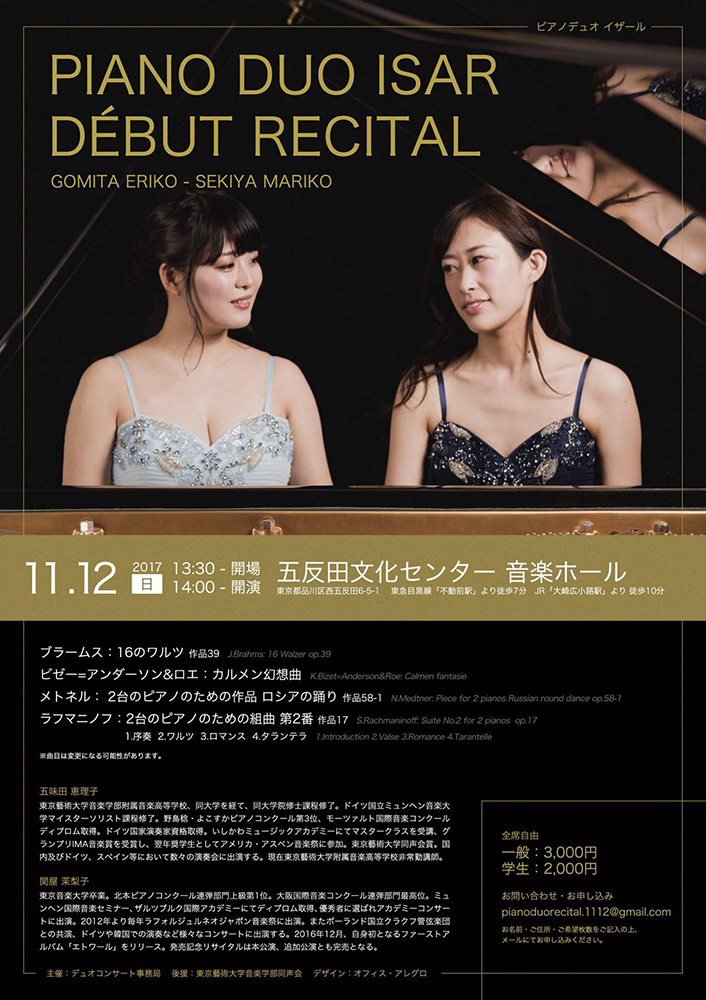 次は、五味田恵理子さん(ピアノ科出身)が新しく結成したデュオ「PIANO DUO ISAR」による、デビューコンサートです。