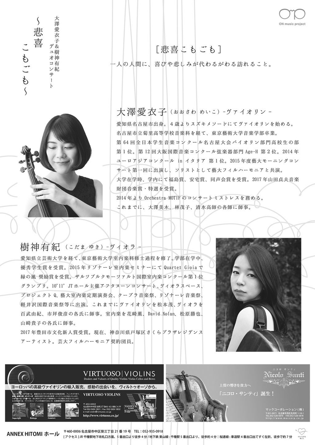 大澤愛衣子(ヴァイオリン)、樹神有紀(ヴィオラ)