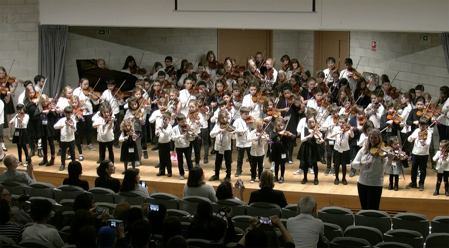 指導者アンサンブル~初歩アンサンブル~上級生アンサンブル~保護者クラス成果発表~ヴァイオリンとヴィオラの三重奏~初歩生徒による合奏と合唱~参加者全員によるPLAY-DOWN (プレイ ダウン 全体斉奏 演奏)