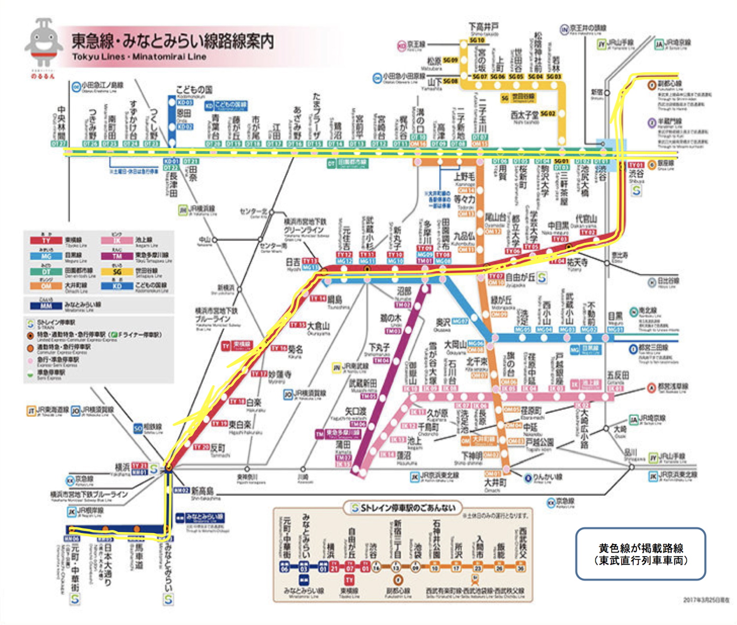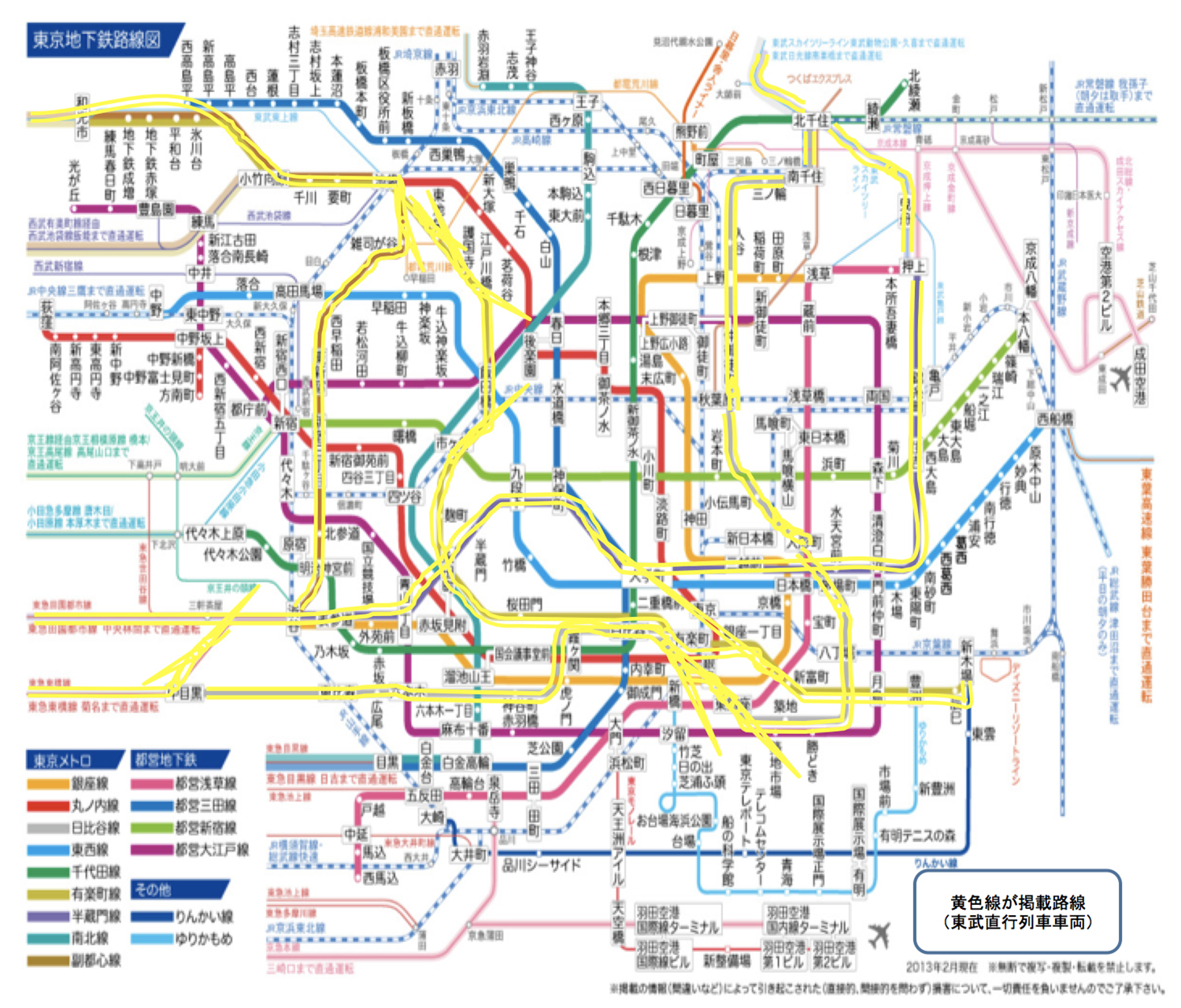 →東武線(相互乗り入れする東急田園都市線や東急東横線を含みます)