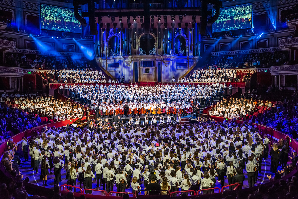 このコンサートの計画は、適切な日を見つけることから始まりました。2023年のイースター・サンデー(復活祭)は、ヨーロッパの学校の学期にほぼ共通して、ベストな選択だったのですが、会場の予約は簡単にはいきませんでした。ロイヤル・アルバート・ホール(RAH)は簡単には決まりません。私は2度断られました。RAHは85%満席のポリシーを持っており、子ども向けのコンサートは意外にもホールを満席にすることはないというのです。しかし、スズキの場合、通常、家族全員が来るので、説得する必要がありました(実際、すぐに完売してしまいました)。すると、プログラム・マネージャーは、子どもたちがコンサートで演奏する曲目全部を暗譜して演奏することを心配したのです。「そんなことが可能なのでしょうか」と。「楽譜もスタンドも椅子もなく、指揮者も一人で、リハーサルはたった1日だけなのに」と。そして、行動についても大きな問題でした。私が提案したガラ公演は、「当ホールの美学を理解していない」と思われるとのメールが届きました。私たちは、スズキ・メソードの背後にあるプロセスを辛抱強く説明しました。生徒たちがいかにすべてを暗譜しながら繰り返し練習するか、また、この1,300人の子どもたちがいかに最初からコンサートの良い振る舞いについて学んでいるか(最年少は5歳でした)。もちろん、各曲の演奏に音楽の魔法をかける174人の高度な訓練を受けたスズキ・ティーチャー・リーダーと、コンサート中ずっとホールで子どもたちと一緒にいる108人のティーチャー・ヘルパーの存在も欠かせない要素です。