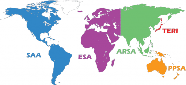 ISAは、図のように、日本(TERI:才能教育研究会)、米国(SAA)、ヨーロッパ(ESA)、汎太平洋(PPSA)、アジア圏(ARSA)の5つの地域で構成されています。現在、全世界には約10,000人のスズキ指導者がおり(※1)、ISAは指導者一人あたり年間6ドルの会費を集めることによって運営されています(※2)。