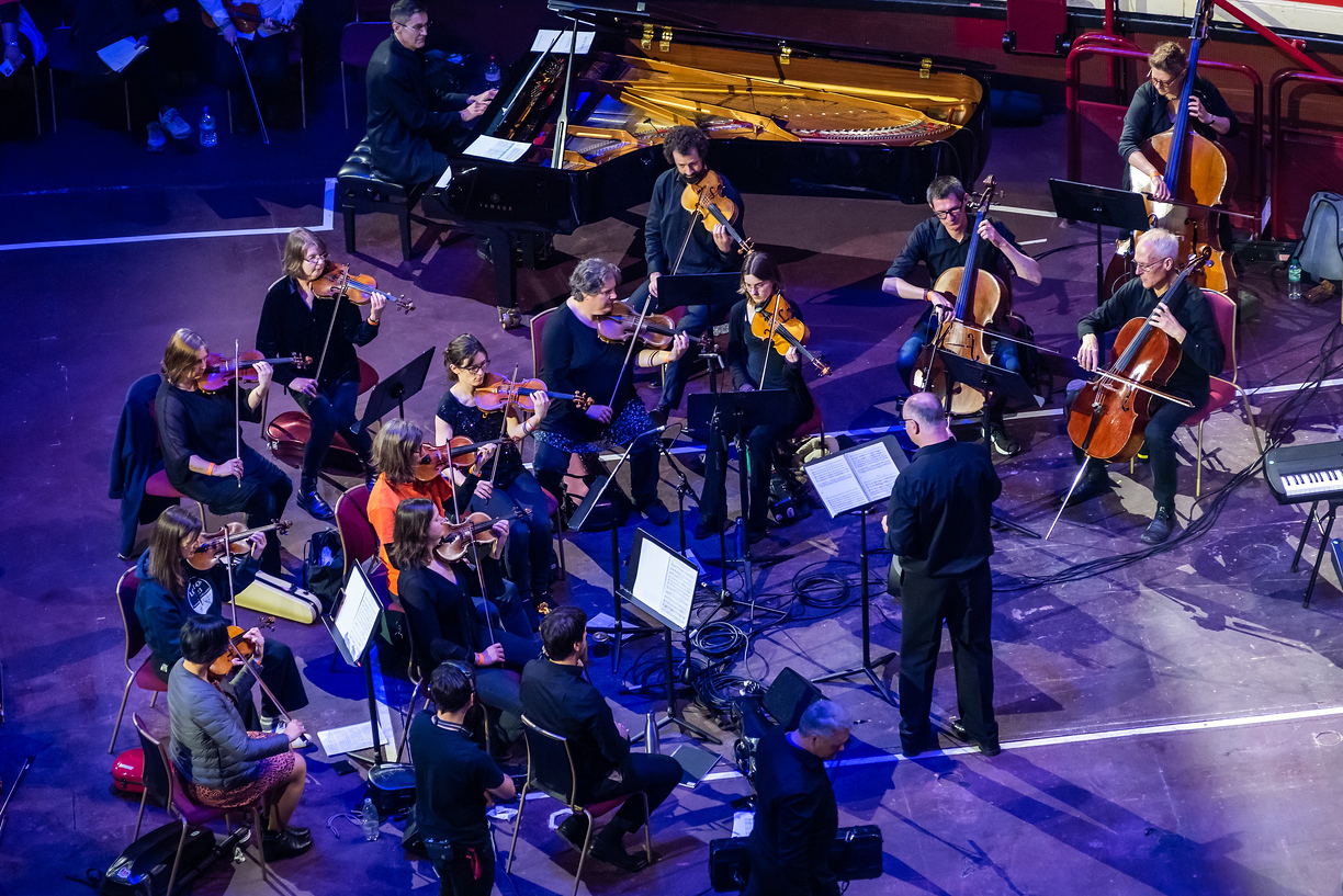 As the day drew on, it became clear that the real challenge for us was going to be to coordinate with the various group leaders whilst playing the big ensemble music. Our leader, Guillem Calvo, and Tim Murray would have their work cut out for them when we all finally got together the following day, as the sheer scale of the concert meant that there were maybe 50 meters separating the Flutes and Recorders on one side, and the Violas on the other, with the hundreds of violins, cellos and pianos reaching from the very top of the stage (and even beyond) to the back of the Arena, the big space that occupies the centre of the Albert Hall.