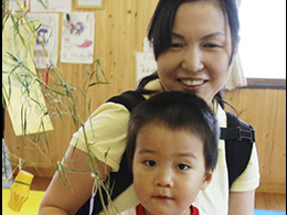 0〜3歳児コースへは、歩仁(あると)が1歳6ヵ月頃に初めて参加し、3クール、お世話になりました。私の加入していた吹奏楽団体の仲間のお子さんが先に通っていて、体験会を紹介してもらいました。0〜3歳児コースのすべてのプログラムが、「生演奏」で進むところがよいと感じ、入会しました。お恥ずかしい話ですが、鈴木鎮一先生については松本に記念館があることぐらいしか、存じ上げませんでした。