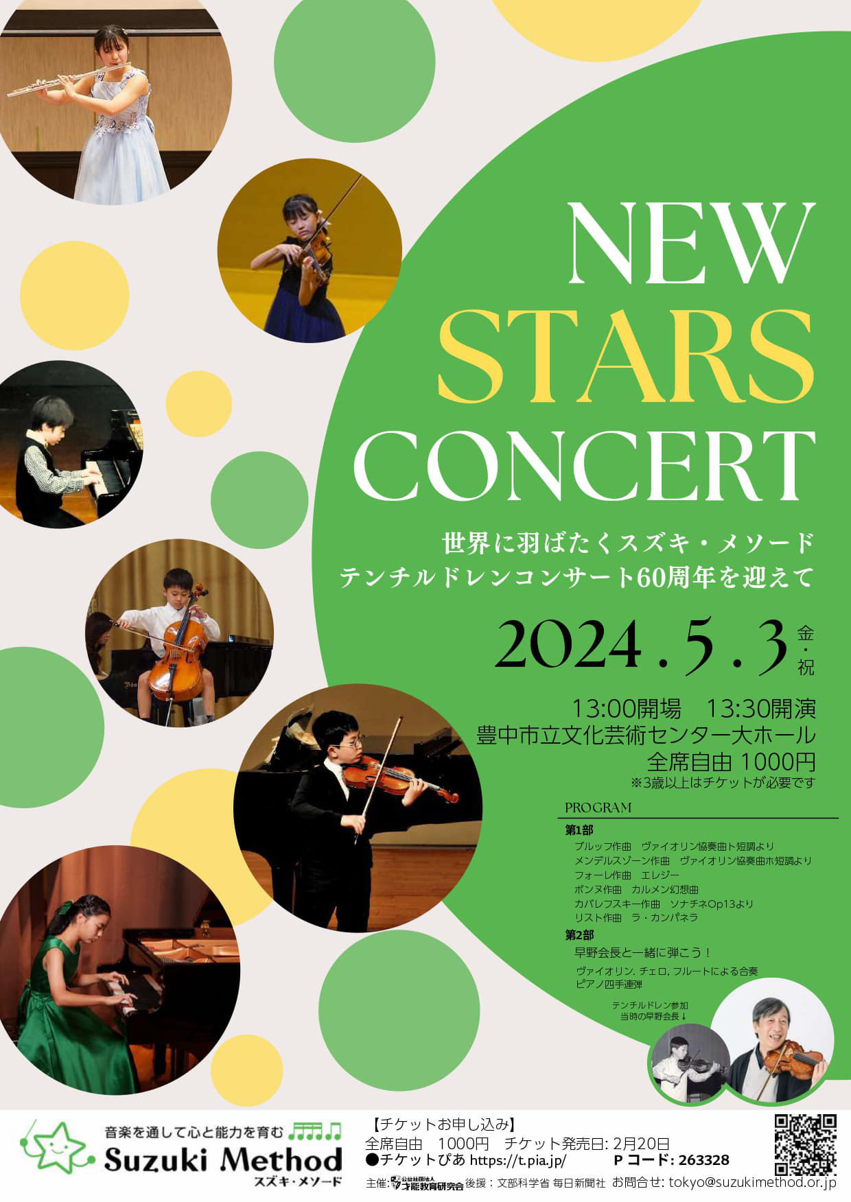 スズキ・メソードが世界74ヵ国と地域に広まった大きなきっかけとなったテンチルドレンコンサート60周年を記念してのコンサートです。大阪公演、東京公演それぞれの独自のプログラムも用意されました。一人でも多くの皆様がコンサート会場に足をお運びくださることを期待しています。
