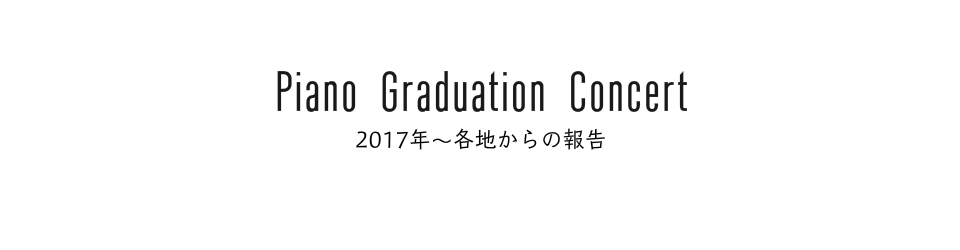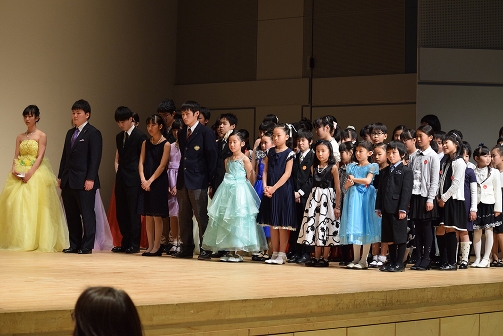 2017年も、各地区でピアノ科卒業式と卒業演奏会を開催しました。スズキ・メソードのピアノ科は、前期初等科から研究科まで、9段階ある卒業課程で課題曲を録音し、全国レベルで検定評価します。卒業演奏会では、その中から選出された生徒が大舞台で演奏することになります。