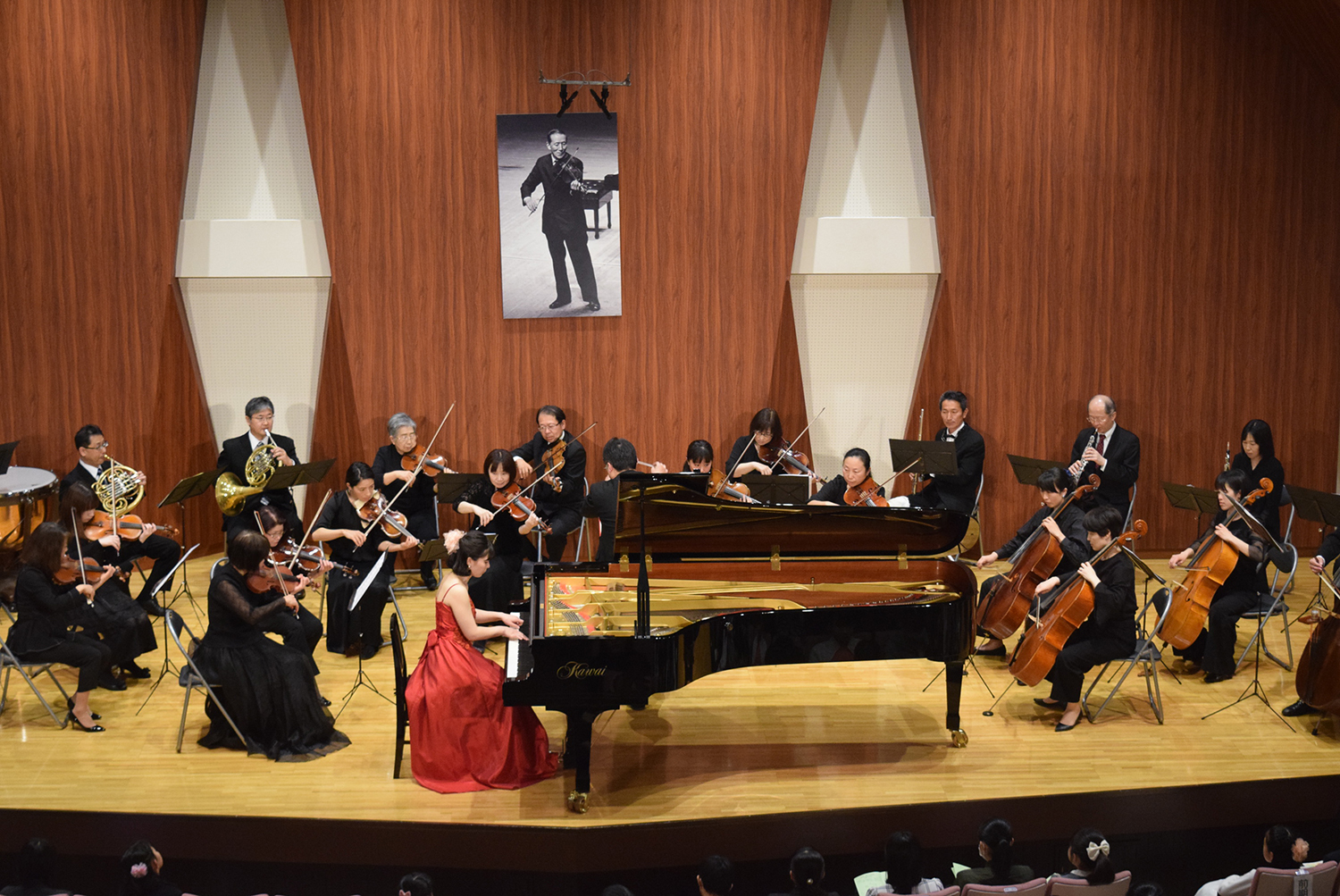 続いて生徒さんたちの目標にもなっている憧れのコンチェルトです。今回はモーツァルト作曲のピアノ協奏曲 第12番 イ長調 K.414です。3回のリハーサルを受けた演奏生たちは、本番では立派に演奏を披露し、会場から大きな拍手をいただきました。