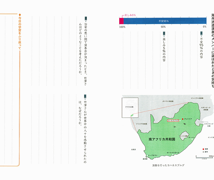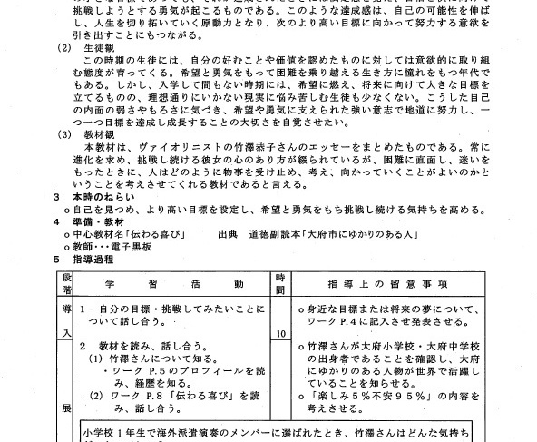 小学6年生は、鈴木政吉さんの「前向きに生きる 」姿勢をテーマに、「よりよく生きる喜び」について、学ぶことになります。さらに嬉しいことに、大府市で生まれ、スズキ・メソードで育ち、世界に羽ばたいたヴァイオリニストで、大府市広報大使を務める竹澤恭子さんも大府市ゆかりの人物として、中学1年生の道徳教材の対象に選ばれました。テーマは「進化を求めて」。「希望と勇気、克己と強い意志」を持つ人物として、その生き方を子どもたちが学びます。