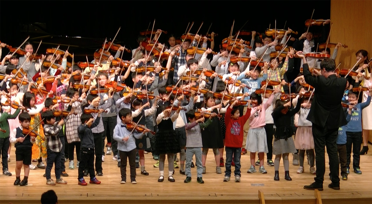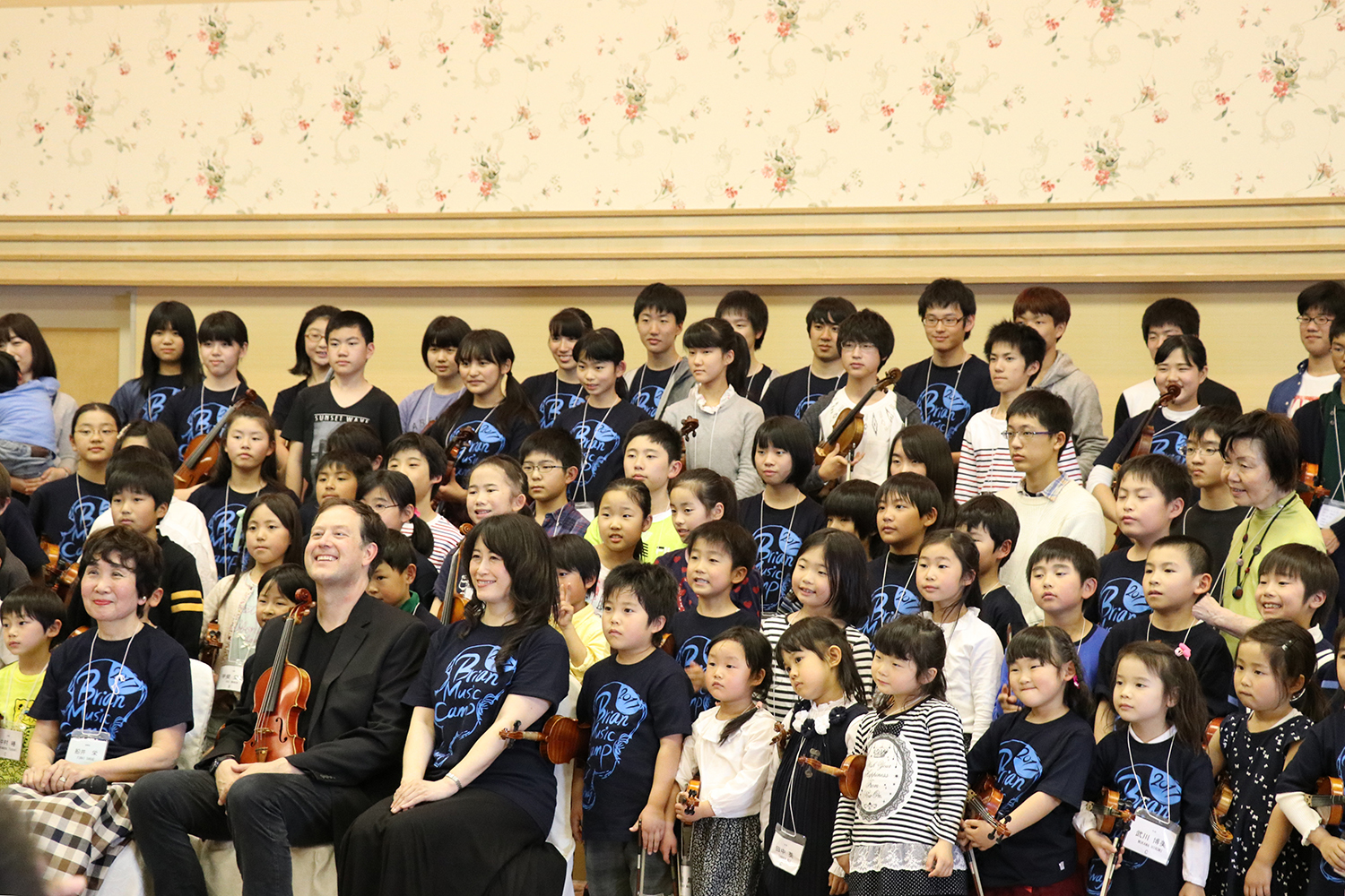 物理学と音楽は、かけ離れたものではなく、人類の英知を学ぶことは変わらない、そして音楽は、演奏を通じて、一つひとつの音に心を込め、偉大な音楽家と心を通じ合える素晴らしい体験、というお話もありました。また、70年前に鈴木先生が始められたことが、世界中で再発見されていることも紹介。学校の試験では測れない能力として、集中して取り組む、粘り強くやり遂げる力などが幼児教育の賜物であること。できるようになるまでのプロセスを大切にするところに、スズキ・メソードの本質があることも紹介されました。会場のご家族たちを、大いに勇気づけられたことでしょう。