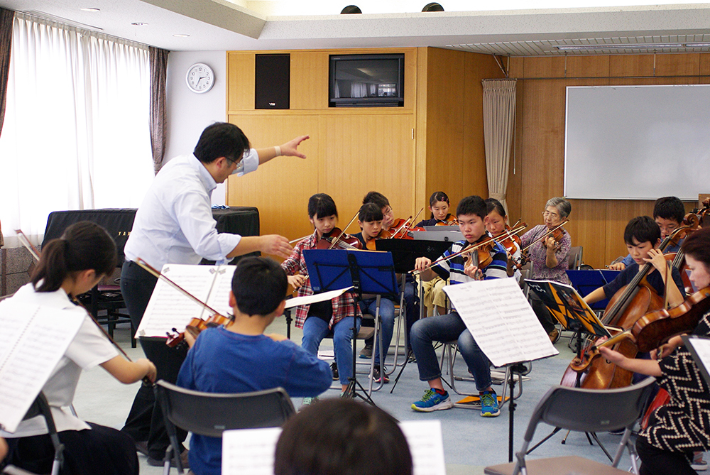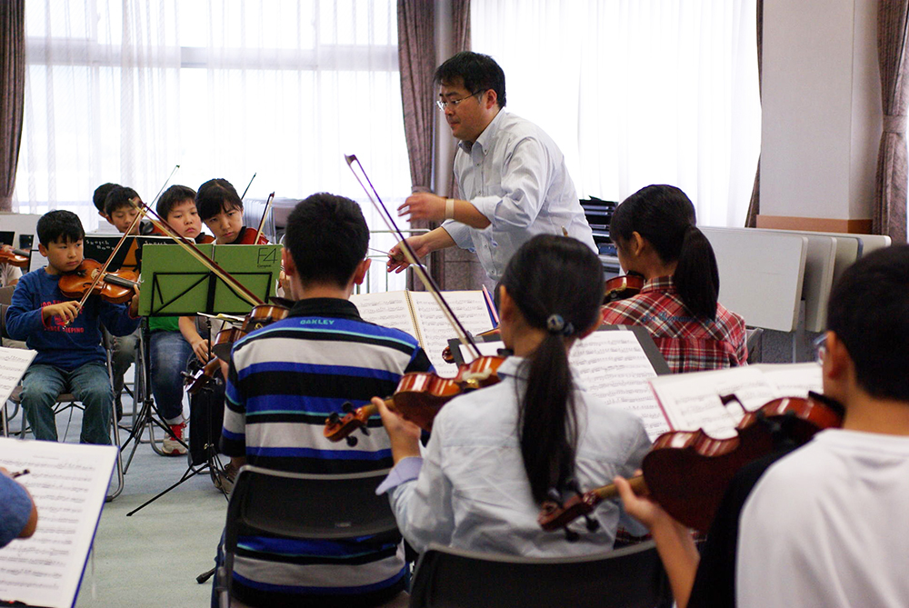 9月24日の練習の様子。今年は、メンデルスゾーンの弦楽のためのシンフォニアへの挑戦が話題です 歴史あるスズキ・メソード甲信地区大会では、毎年たくさんの生徒さんが一堂に会し、素敵な演奏を繰り広げます。10月29日(日)13:30開演で、岡谷市のカノラホール(岡谷市文化会館)で開催されます。今年は、メンデルスゾーンの「弦楽のためのシンフォニア第8番ニ長調より 第1楽章 」のオーケストラ演奏に加え、各科の演奏を盛りだくさんに用意しました。早野会長による講演「スズキ・メソードの先進性」もあります。