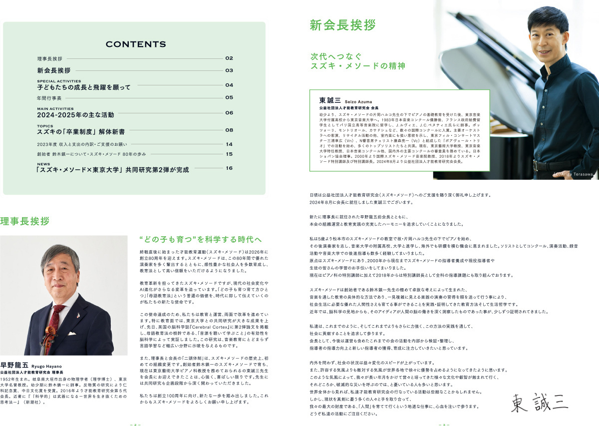 公益社団法人才能教育研究会(スズキ・メソード)は2019年度より年次活動報告書を発行しています。7月20日に2024年4月~2025年3月の活動をまとめた2024年度版が発行されました。以下、今回の報告書の主要な部分をご紹介します。