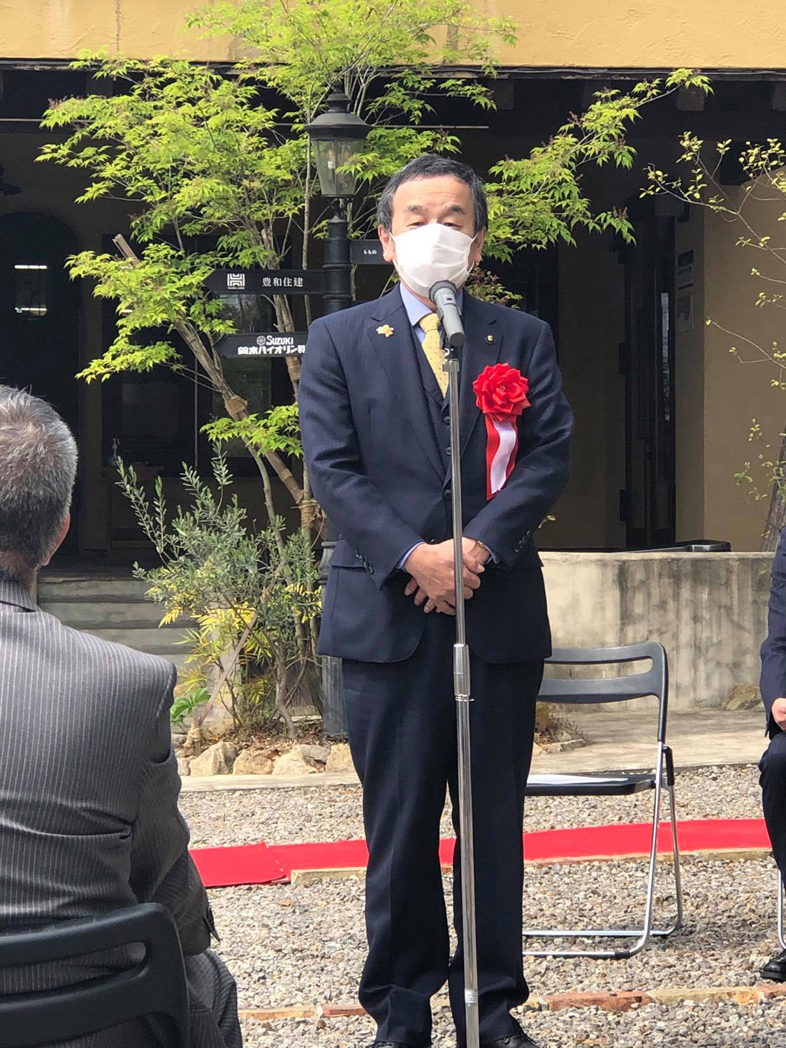 続いて、来賓の岡村秀人大府市長からは、「待望の、念願の鈴木バイオリンの本社が大府に85年ぶりに戻ってまいりました。歴史を紐解けば、1935年に大府に分工場が生まれ、音の研究をする