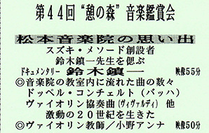 6月26日(土)、松本市城山にあるギャラリー&カフェ”憩の森”で、第44回”憩の森”音楽鑑賞会が開催されます。今回のテーマは「松本音楽院の思い出」として鈴木鎮一先生を偲びながら、当時の音楽院で聴かれた曲を鑑賞します。とても興味深いイベントです。