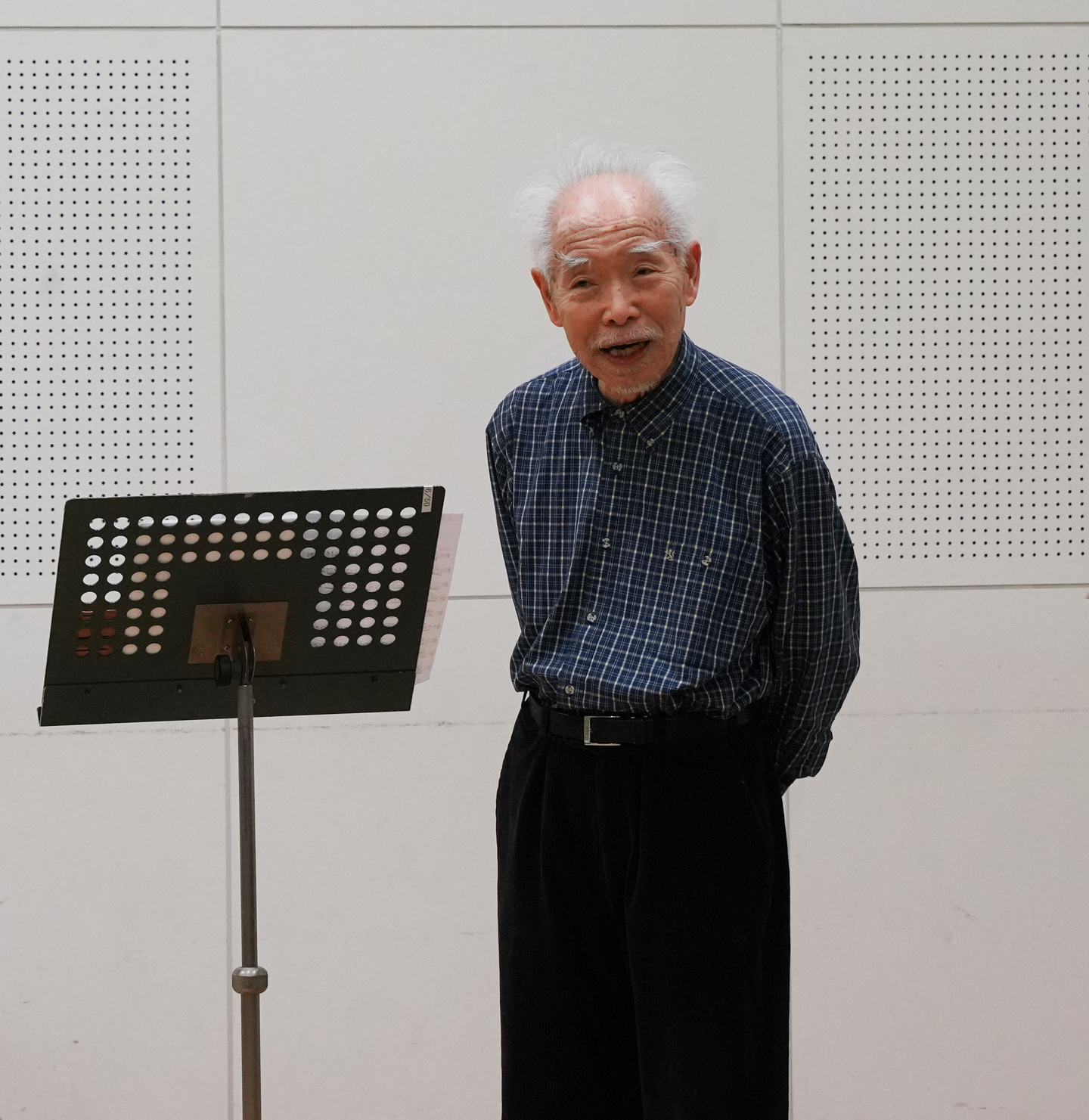 今年の研究テーマは、バッハの無伴奏チェロ組曲第1番。チェロ奏者にとっては十八番(おはこ)の曲として普段から練習を重ねる曲ですが、実はヴィオラ奏者たちにとっても、バッハの無伴奏チェロ組曲はとても勉強になる曲ばかり。今回は3人の指導者が6曲に分かれた第1番の2曲ずつを演奏し、それに対して豊田耕兒先生からレッスンを受けるマスタークラス方式。そして残りの参加者たち全員で、たった今教わったばかりの豊田先生の教えを体で感じながら、全員で斉奏。バッハの奥深い世界を長年研究してこられた豊田先生から直接にご指導を受ける貴重な機会になりました。
