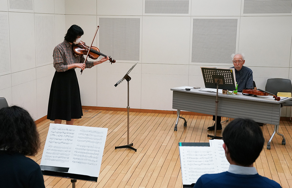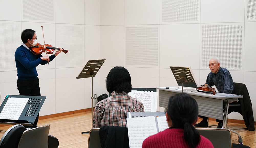 全員でそれぞれの曲を斉奏する姿はスズキ・メソードならではでしょう。豊田先生のご指摘が見事に心を合わせての演奏にブラッシュアップされていきました。大きな宝物をこの日も豊田先生からいただけたことになり、確かな手応えを感じることができたのです。