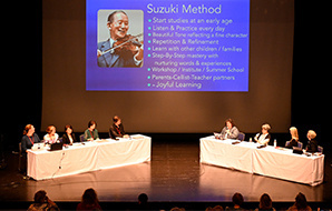 10月14日(土)夕方5時からのテーマは指導者養成の根幹でした。ここではグループでの意見交換をせず、全体セッションのみの展開でした。次世代の指導者にTTが何を伝えなければならないかを焦点に、スズキの音にこだわったディスカッションになりました。