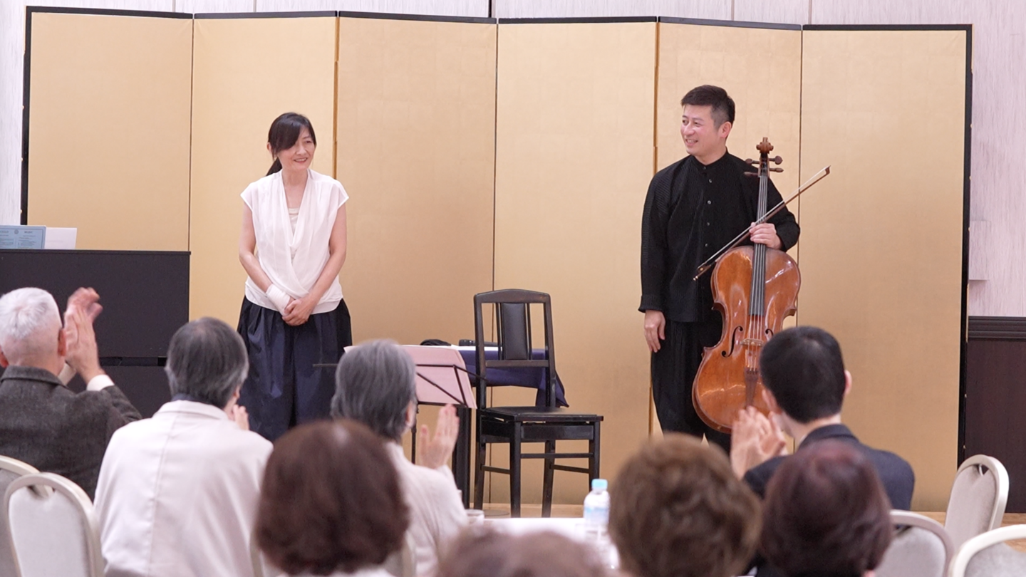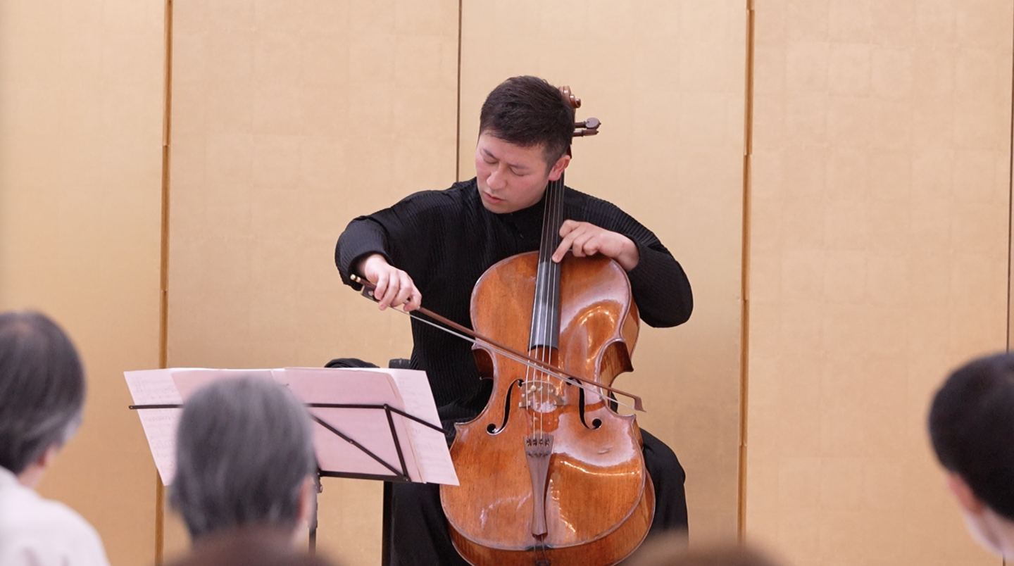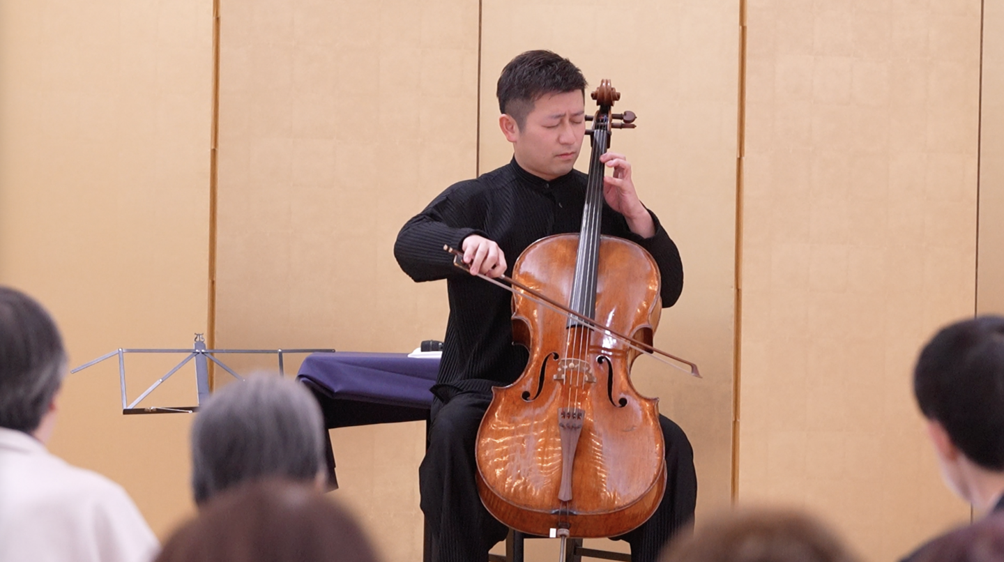 コーヒーブレイクでの楽しいジャンケン大会を終え、いよいよ第2部には、チェリストとして各方面で活躍されている宮田大さんが登場。語りを交えてのライブ演奏では、穏やかなお話のスタイルとともに、圧倒的なパフォーマンスや心に沁みいる演奏など、バラエティ豊かな演奏が続きました。宇都宮支部で大さんが幼少の頃よりよくご存知のヴァイオリン科指導者、川沼文夫先生とのトークセッションも楽しいひと時となりました。