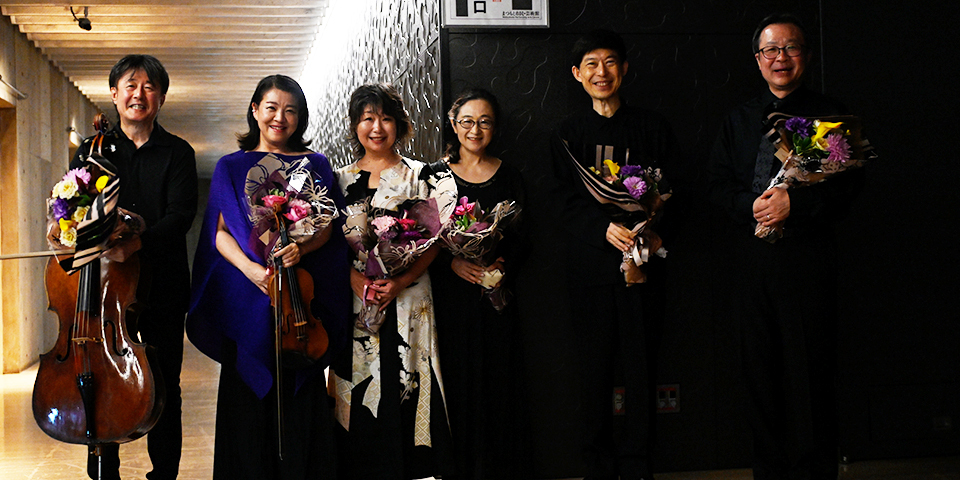 主ホールで、名古屋の宗次ホールがスポンサーとして協力してくださった「特別講師によるコンサート」を開催しました。夏期学校期間中に各科で素晴らしいレッスンや講義を行なってくださった特別講師の先生方が、その持てる音楽性を遺憾なく発揮されたのが、このコンサートでした。例年より早い時間帯での一般公開をしましたので、当日券を購入された地元の皆様も駆けつけてくださり、ほぼ満席の中で始まりました。