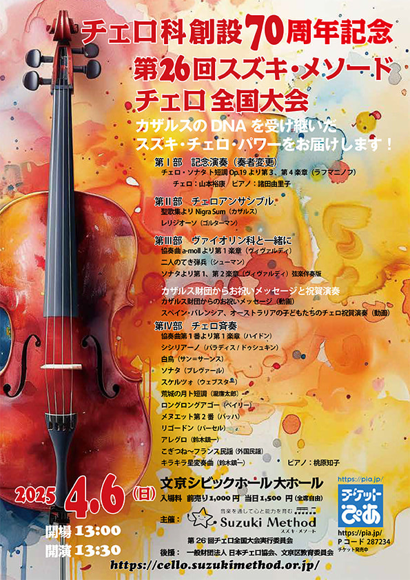 「チェロ科CDの先生」でもある堤先生は、このチェロ全国大会を大変楽しみにされておられ、当日のプログラムにもメッセージを寄せていただいております。今回、残念ながら演奏はかないませんでしたが、当時は会場にもお越しいただき、舞台でお話もしてくださることになっています。