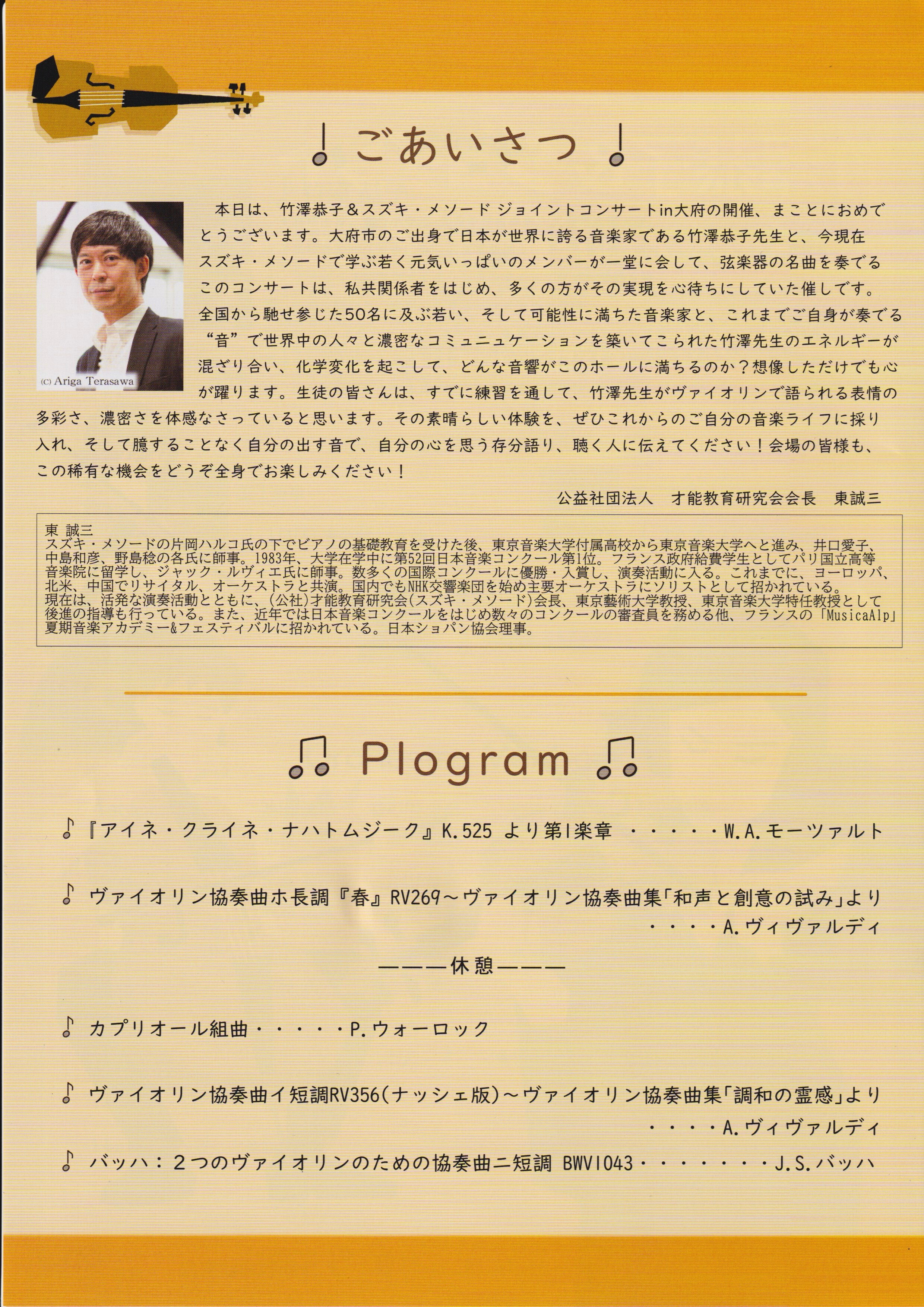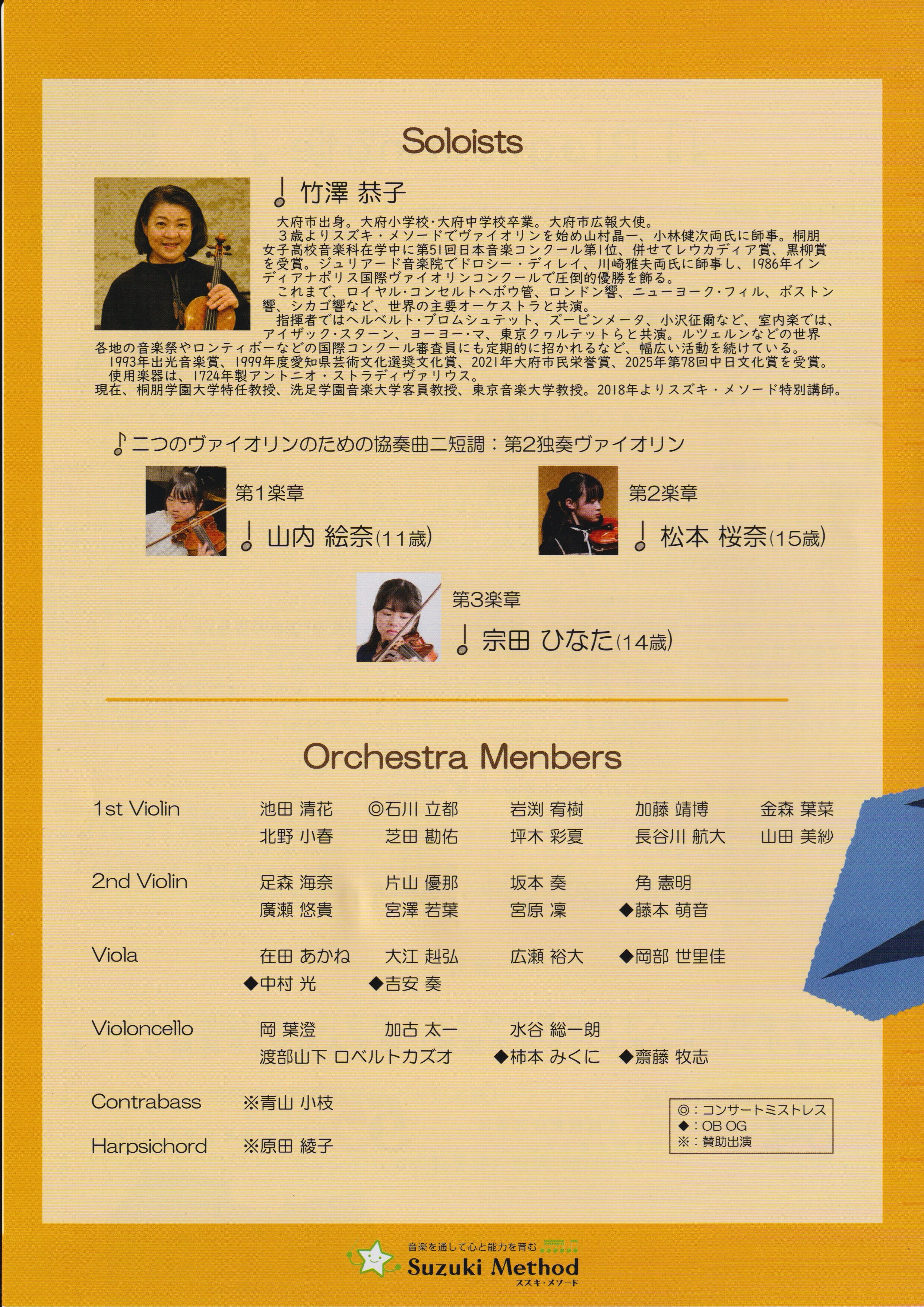 最後に、このような大きな舞台は、多くの方々の支えがあってこそ実現します。大府市の皆さま、スズキ・メソードの先生方、そして関係者の皆さまに、心より御礼申し上げます。本日は、本当にありがとうございました。