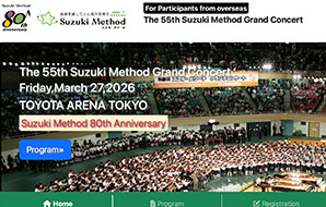 The 55th Suzuki Method Grand Concert, to be held at Toyota Arena Tokyo on Friday, 27 March 2026, warmly welcomes participants from overseas. For further details, please visit this website.