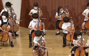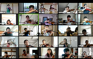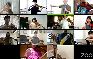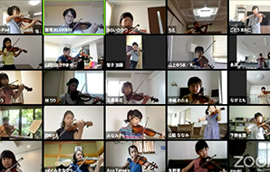 ヴァイオリン科・チェロ科は教室別レッスンとグループレッスン、フルート科はグループレッスン、ピアノ科はお楽しみリズムタイムと卒業曲練習ポイント①②、0〜3歳児コースを開催。参加生徒と指導者がZoomでつながり、レッスンを受けたり、才能教育会館であらかじめ収録された映像と一緒に、画面越しにグループレッスンを受けるなどの工夫がありました。(写真は一部です。後日、追加します)