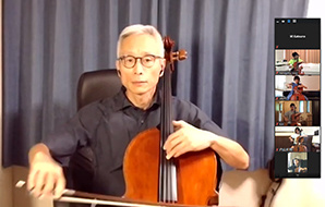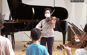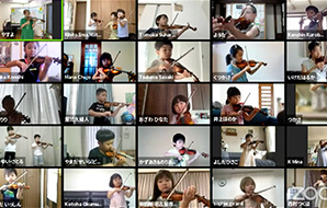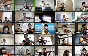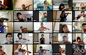 参加生徒と指導者がZoomでつながり、レッスンを受けたり、才能教育会館であらかじめ収録された映像と一緒に、画面越しにグループレッスンを受けるなどの工夫がありました。(写真は一部です。後日、追加します)