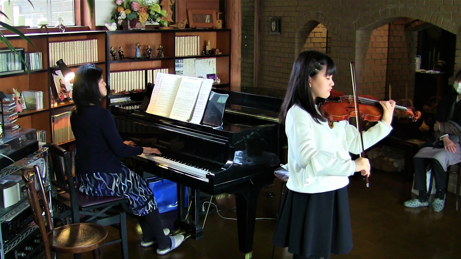 今日、演奏させていただくメンデルスゾーンのヴァイオリン協奏曲は13冊目の最終曲で、この曲の全楽章を録音し、審査を通過することによって、スズキ・メソードの全課程を卒業します。来週の録音へ向けて曲が仕上がってきたところで、皆さんに演奏を聴いていただくこのような機会をいただき、とても感謝しています。ピアノ伴奏は同じスズキ・メソードでピアノを習った母の相澤美智子で、親子デュオで演奏させていただきます。