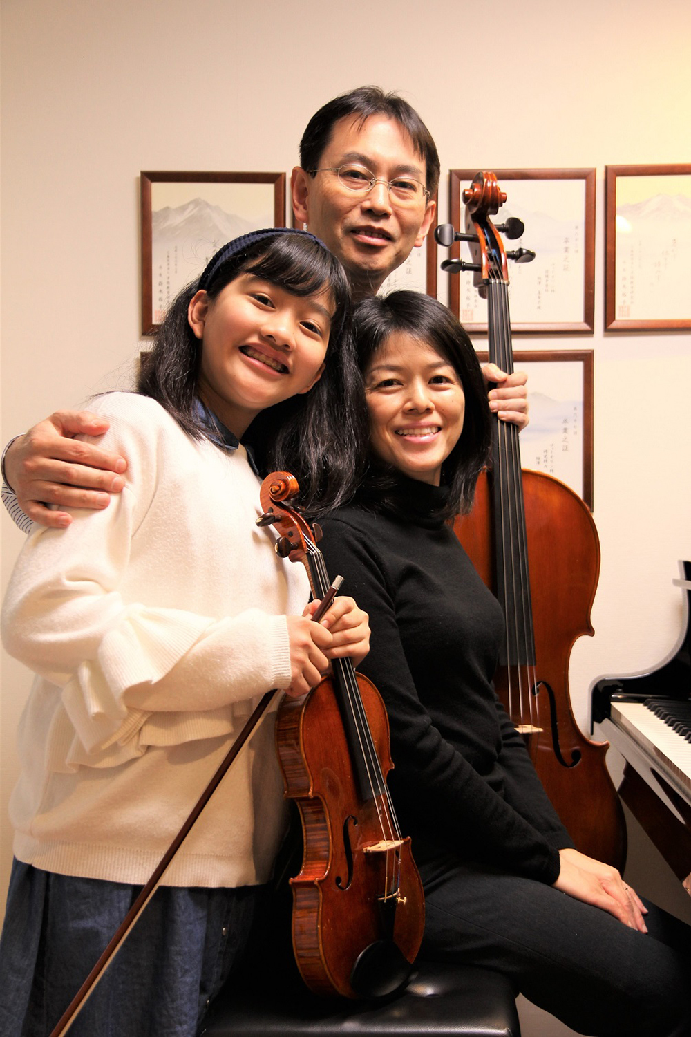 真希子は生まれる前からスズキ・メソードでヴァイオリンを習わされる運命にありました。私自身がスズキ・メソードで育ち、スズキ・メソードの教育法と細田和枝先生(関東地区ピアノ科指導者)という素晴らしい恩師のお陰で、音楽を友とする人生を歩んでおり、いつか子どもをもつことがあれば、スズキ・メソードでヴァイオリンを(自分とは違う楽器を)勉強させたい、そして、一緒に合奏したいという夢を抱いていたからです。夫もリコーダー・アンサンブルなどをする音楽好きの家庭で育ち、高校時代は独学で楽典や指揮法を勉強して吹奏楽部の指揮者を務め、大学時代はオーケストラでホルンを吹き、社会人になってからはチェロを楽しむような人です。その夫に、私は結婚前からスズキ・メソードの話をして、『愛に生きる』を読み聞かせ、結婚してからはグランドコンサートに連れていくなどの「刷り込み教育」をしていましたので、夫も当然、子どもをスズキ・メソードで育てることになるだろうと思っていたようです。