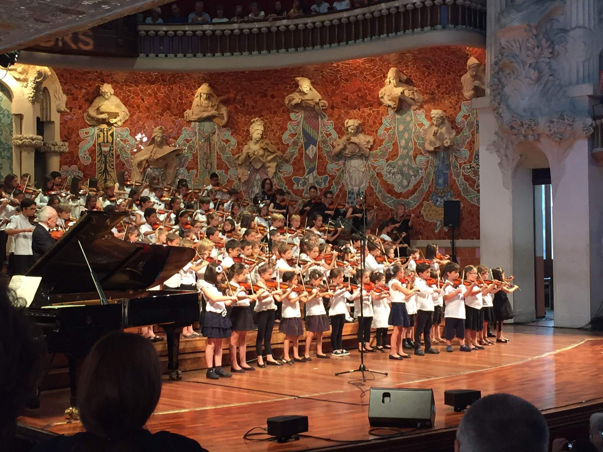 三つ目は、美しいカタルーニャ音楽堂に来てくださったお客様の様子です。かわいい孫の晴れ姿を見に来たらしい盛装したおじいちゃん、おばあちゃんのカップルで超満員。一曲終わるごとにヤンヤの喝采で、場内は熱気でむせ返っていました。でも学校の学芸会を参観している雰囲気では、まったくなくて、一人前の尊厳ある音楽家として子どもを見ている態度で、子どもも簡単な曲でも堂々と弾くので、立派な大人の音楽として聴こえてくるから不思議です。ここでは子どもにも能動的に音楽する心がすでに芽生えてきている感があります。