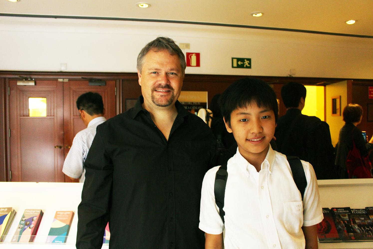 Jan先生と一緒に ソロ演奏時、半分くらいの出演者は、ドレスを着ないで演奏していました。私は赤いドレスを日本から用意してきたけれども、「張り切りすぎ」と思われないかというためらいがありました。弾く直前は、ドキドキして、「間違えたらどうしよう」という不安がよぎり、少し怖くなりました。