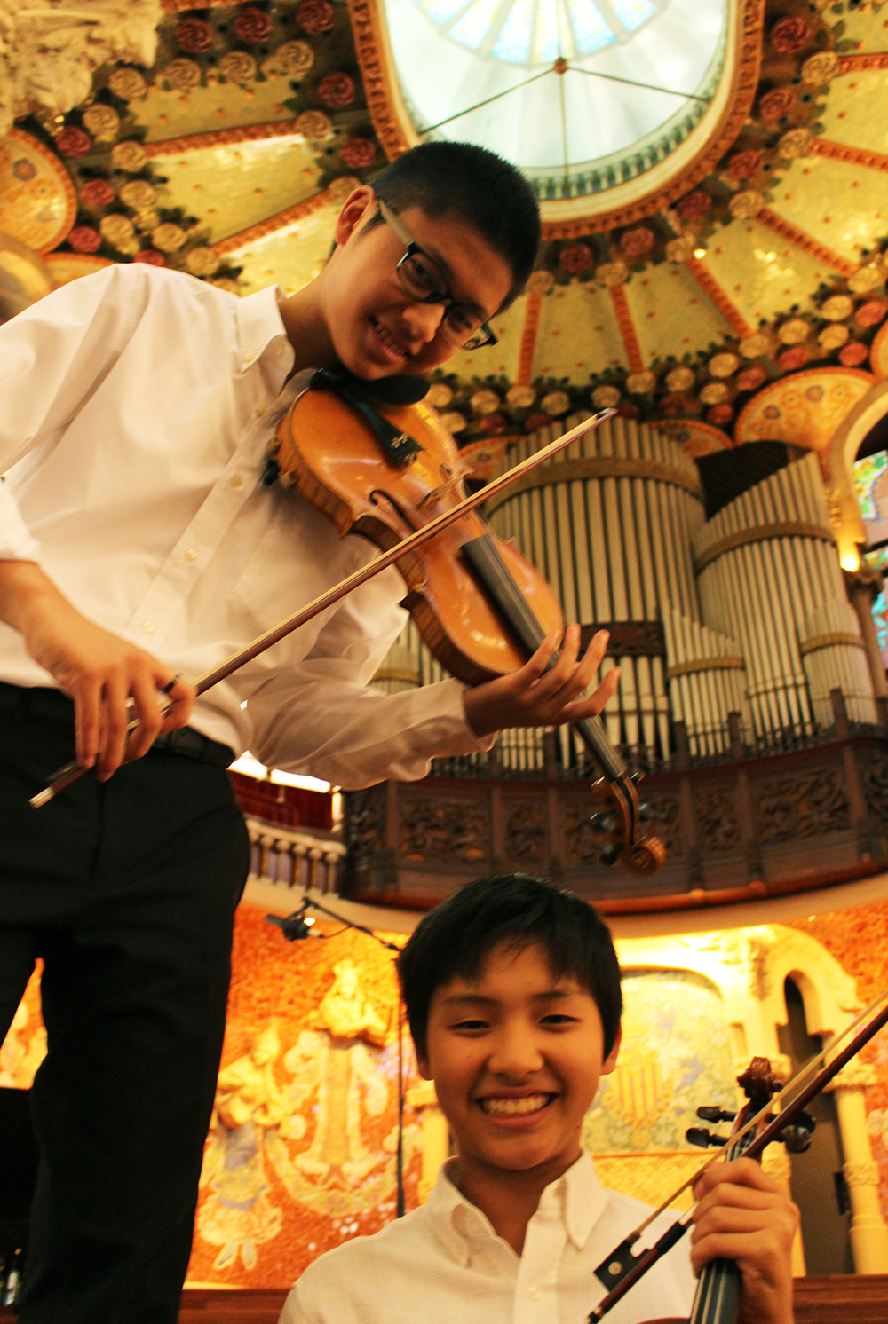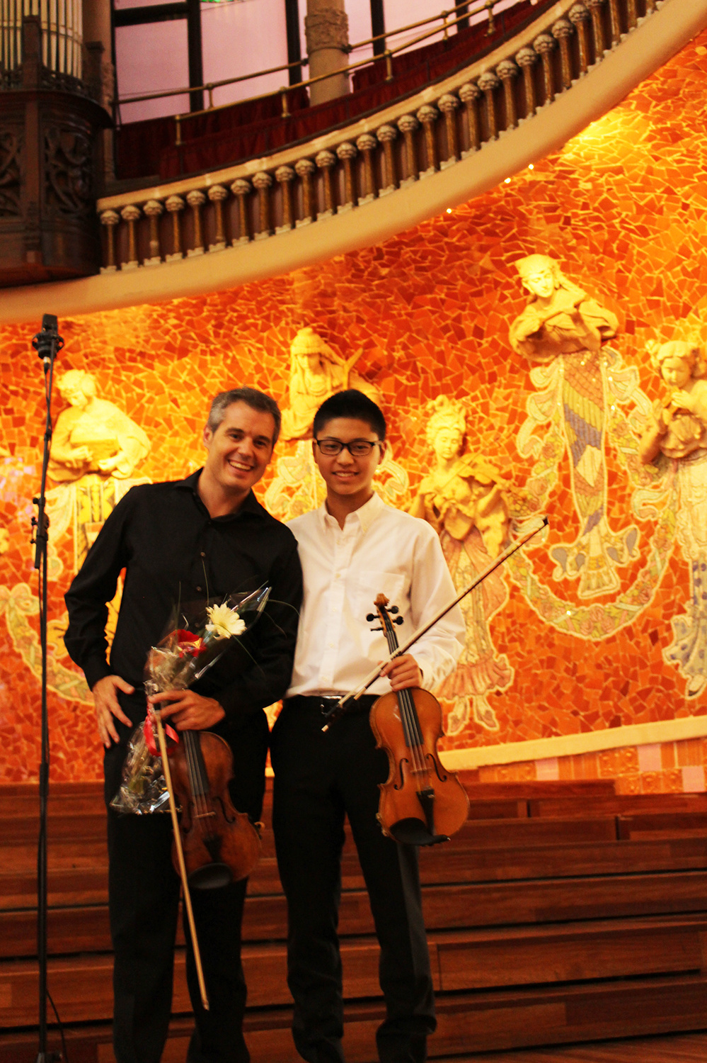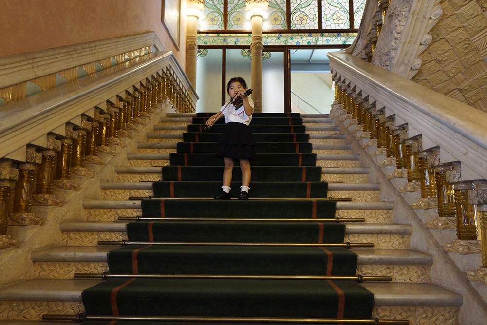 カタルーニャ音楽堂のスタッフの方々が好意でコンサート後に音楽堂の階段で弾かせていただきました! また、グエル公園やサクラダファミリア前、ベルギーのグランプラス広場などでヴァイオリンを取り出して弾く娘に、人々が微笑ましく目を細めて足を止め、温かい拍手を送ってくれました。カタルーニャ音楽堂のスタッフの方々が好意でコンサート後に音楽堂の階段で弾かせてくれ、拍手をくれるという一幕もありました。
