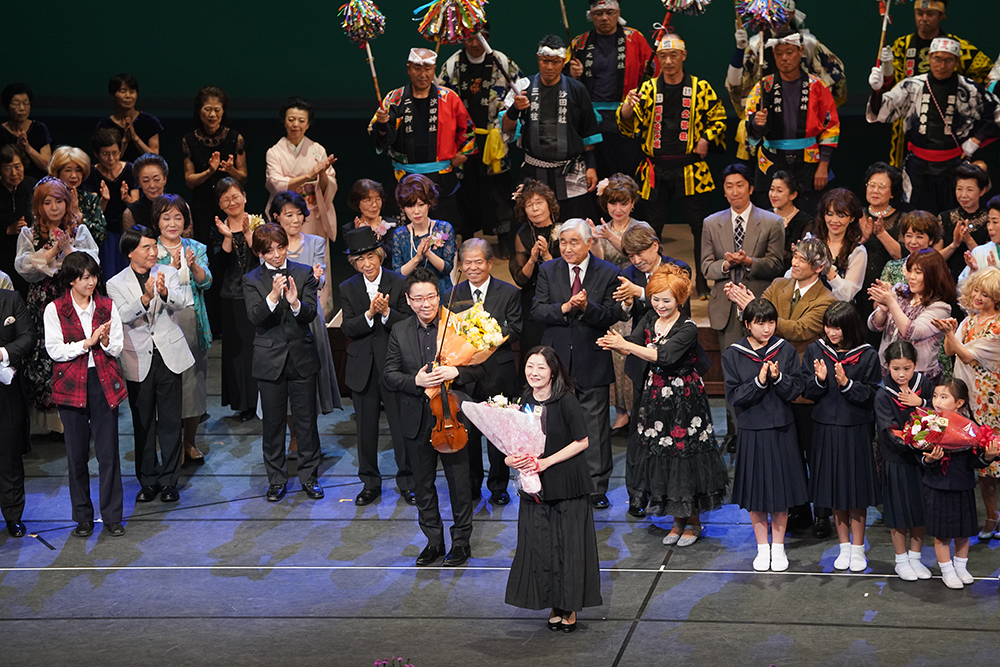 「名古屋の子守唄」を演奏された鈴木裕子先生 企画~準備~お稽古に約1年半の時間を費やし、総勢300名以上のスタッフにより実現した立派な舞台に、私もヴァイオリン演奏で参加させていただき、本当に幸せでした。