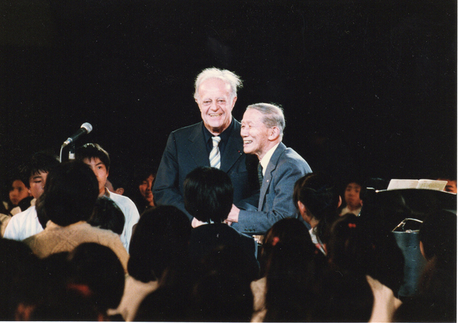 そうした悲しいニュースの中にも、嬉しいできごともありました。フランスのチェリスト、アンドレ・ナヴァラとの交流です。1980年、そして82年の2度にわたる才能教育会館での公開レッスンで、的確な指導であるばかりでなく、誠実さとユーモアに溢れたレッスンは、受講生や聴講者に強い影響を与えました。82年の公開レッスンでは、チェロ科の生徒を始め、卒業生、そして指導者など9名が受講。一貫して、その姿勢も音色もやわらかく、自然で美しい姿に誰もが魅了されました。