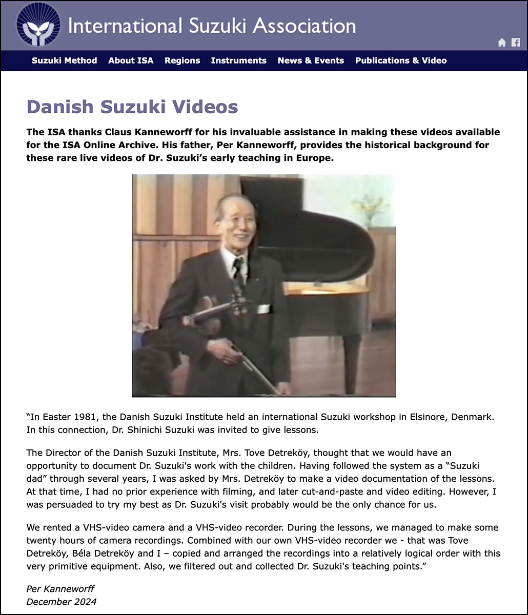 In the previous issue of Monthly Suzuki, the International Suzuki Association (ISA) website revealed the background to the release of archived footage from the ‘2nd European Joint Seminar’ (1981), recorded in Denmark. This was shared by piano teacher trainer Ruth Miura (based in Barcelona).