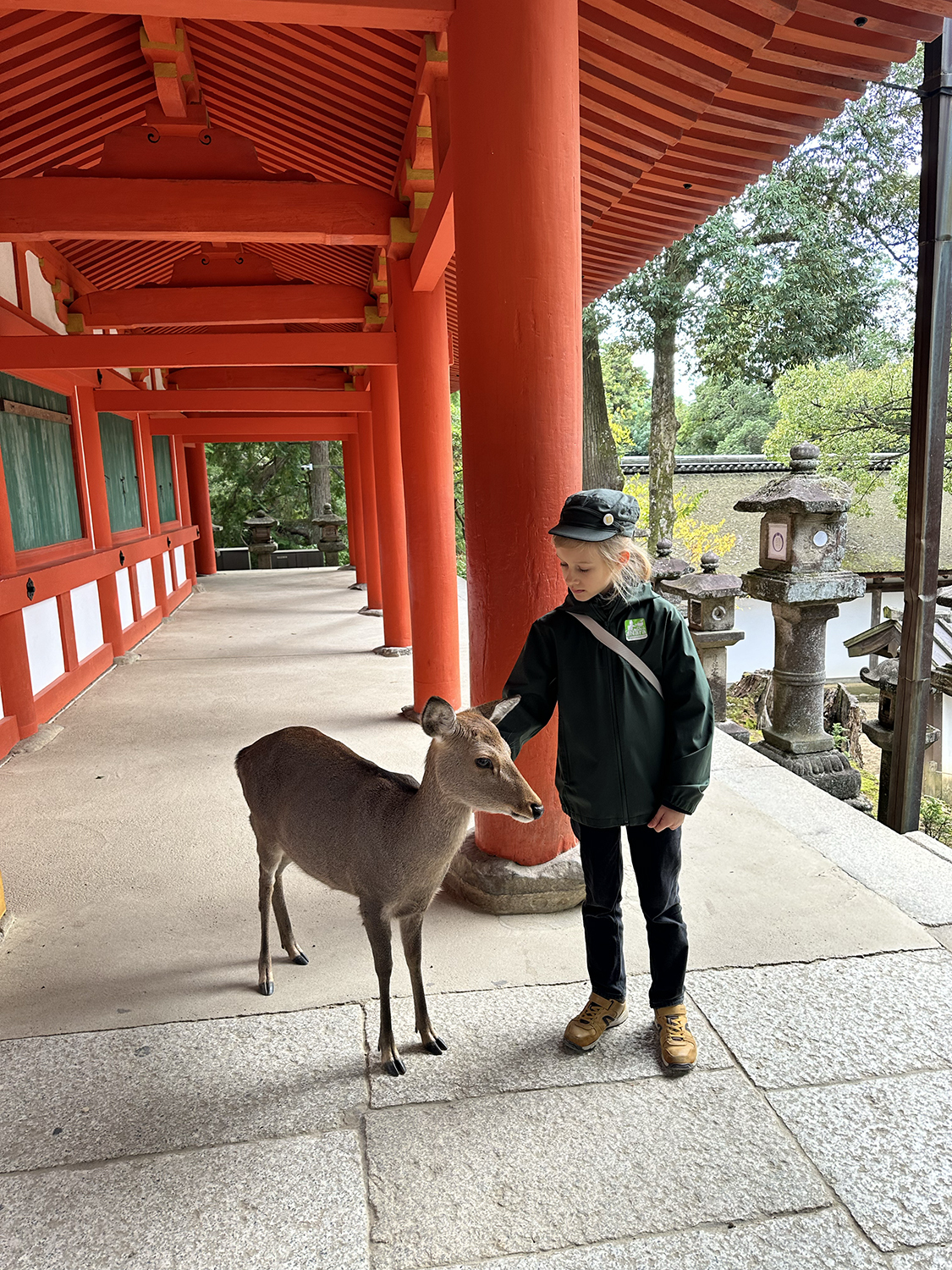 箱根に行きました。とても冒険的な旅でしたが、残念ながら富士山には雪がありませんでした。それから京都にも行きました。とても幸せな気分になる場所で、たくさんの鳥居がある丘がありました。高野山にも行きました。たくさんの素晴らしい建築様式のお寺がありました。最後に東京に行き、母の展覧会を見に行きました。東京は大きく、混雑していましたが、とてもよく整理されていました。